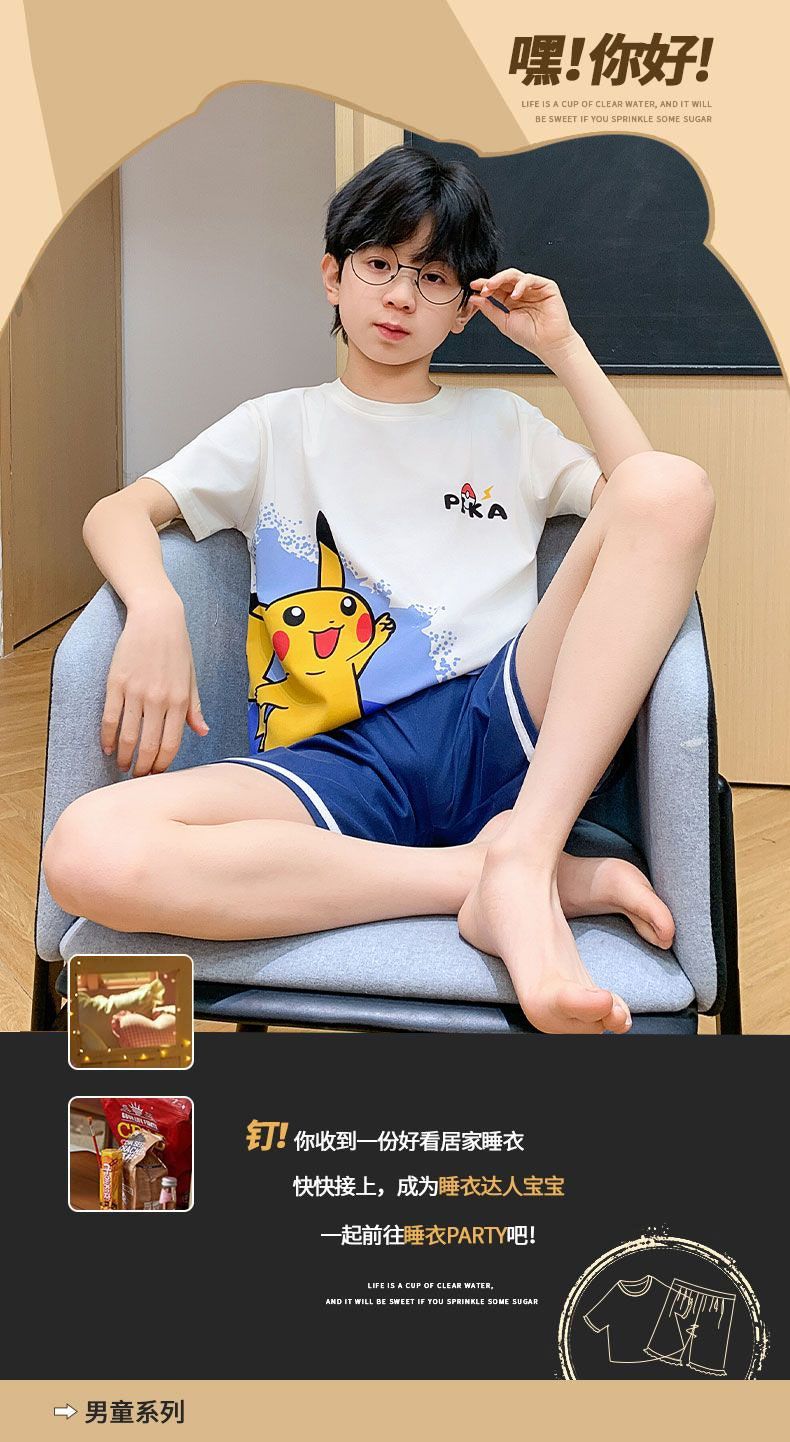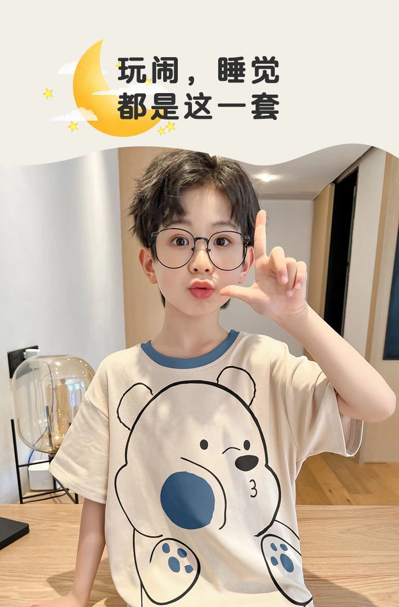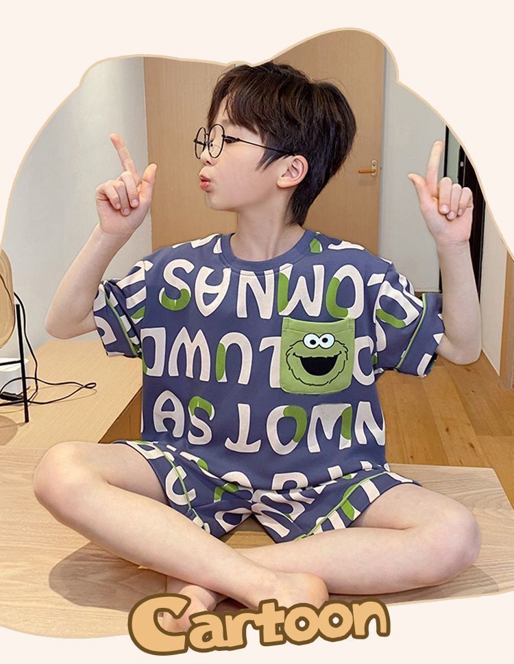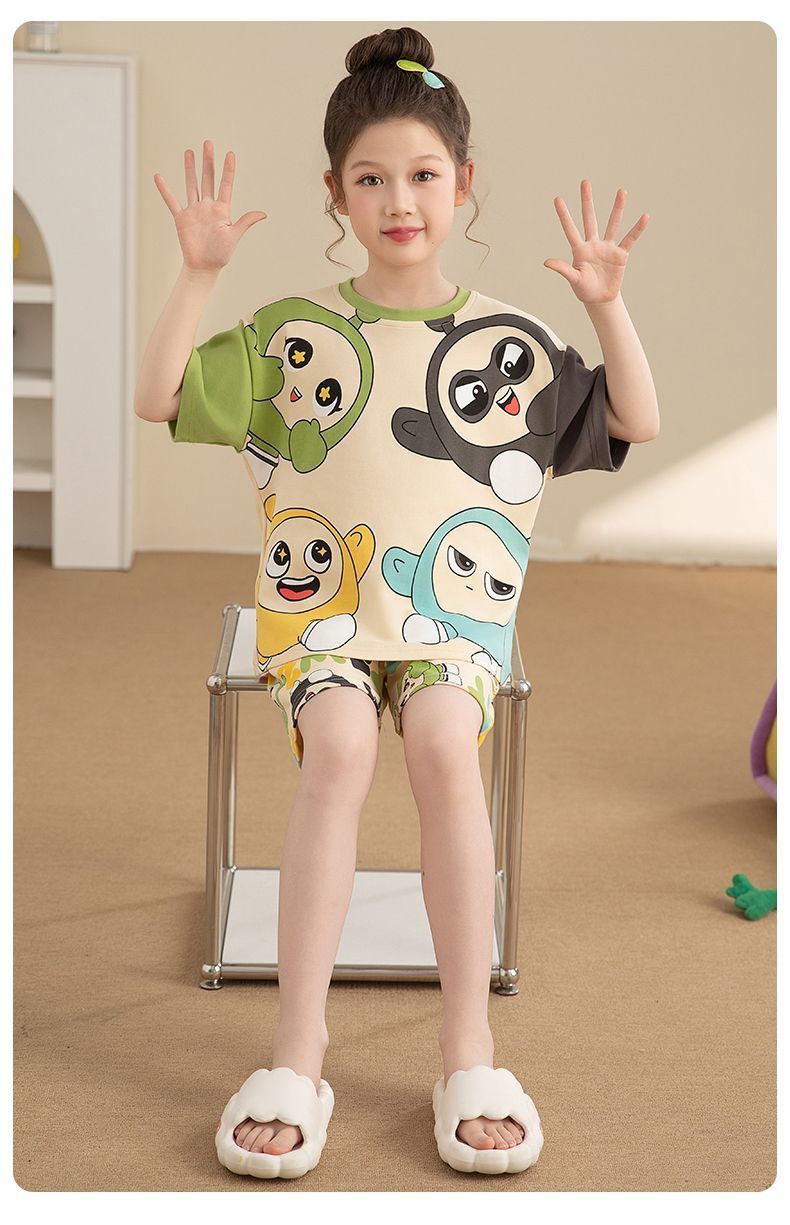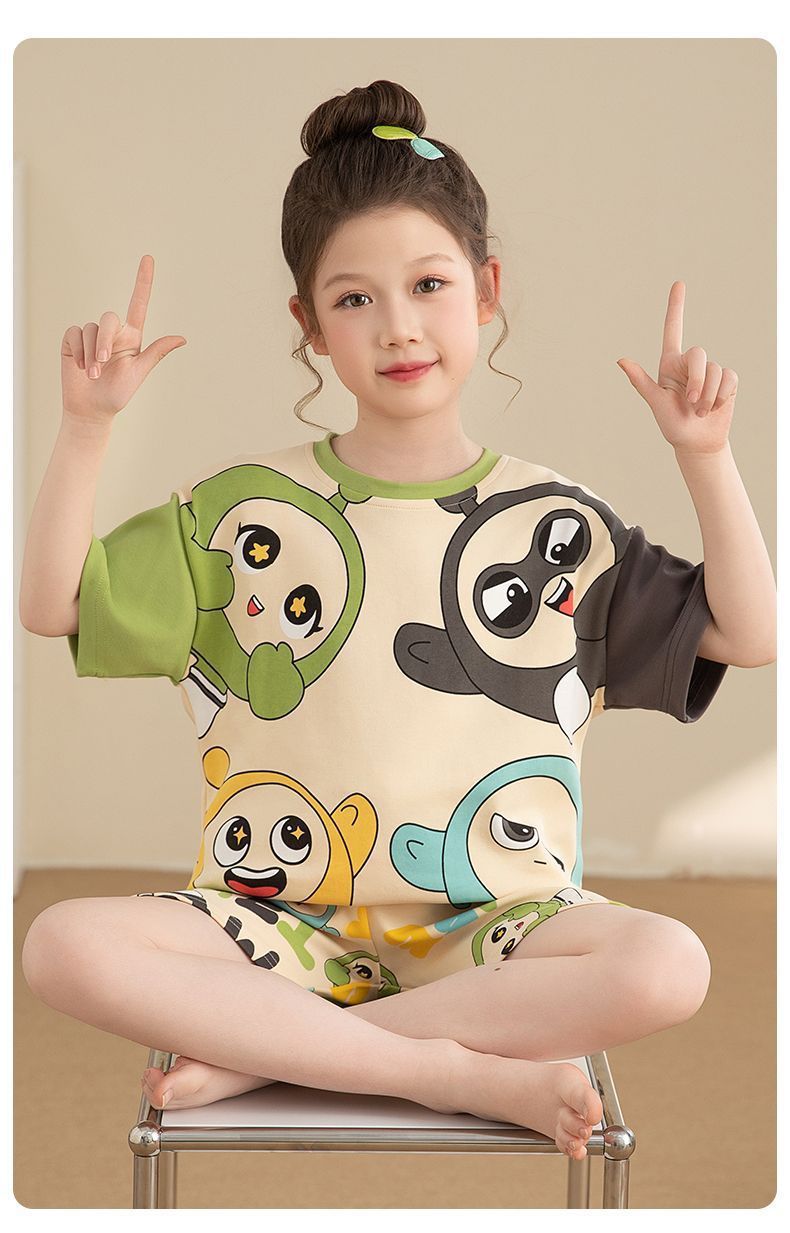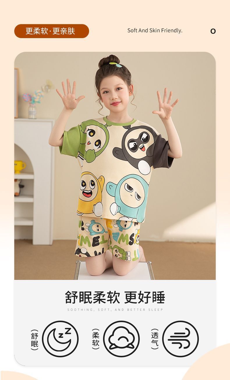 Nezha 2025 새로운 어린이 잠옷 소년 만화 울트라 맨 반팔 반바지 정장 남성 가정 의류 부드러운스토어 가기