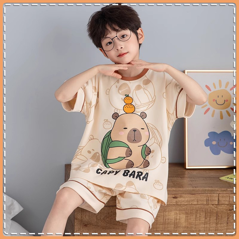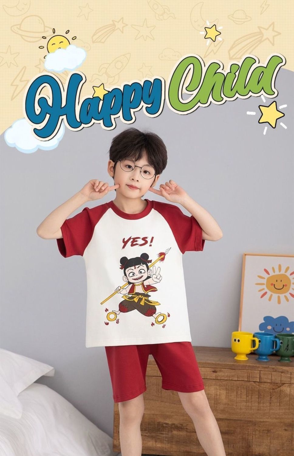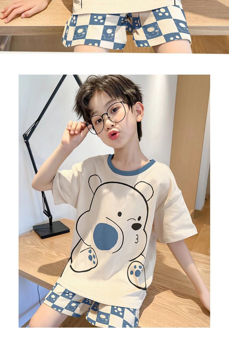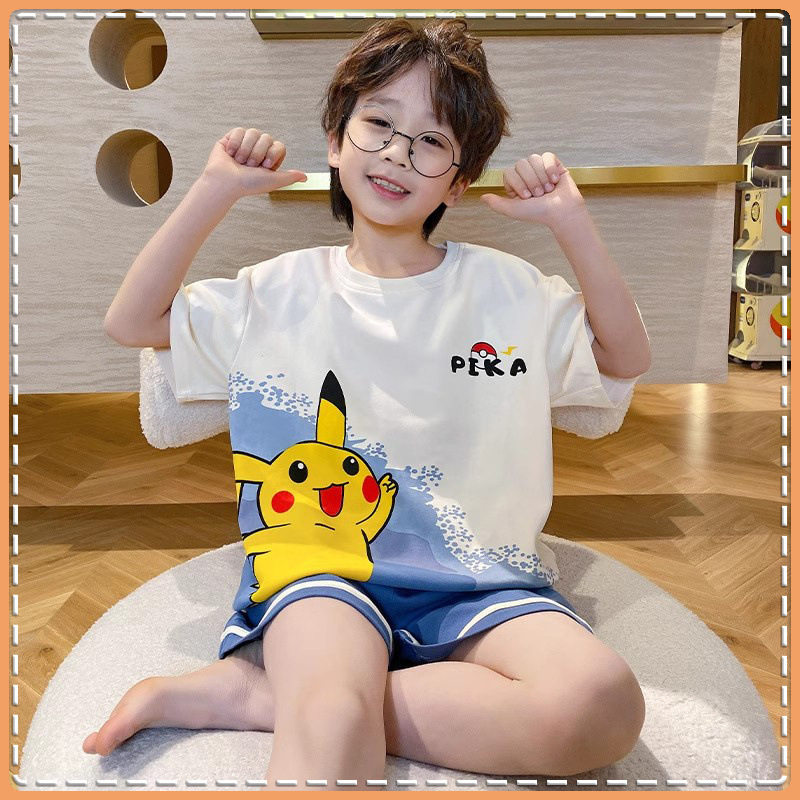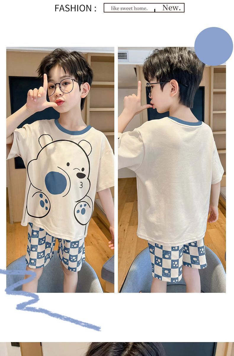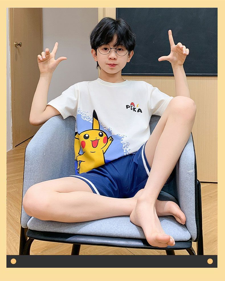 Nezha 2025 새로운 어린이 잠옷 소년 만화 울트라 맨 반팔 반바지 정장 남성 가정 의류 부드러운스토어 가기
