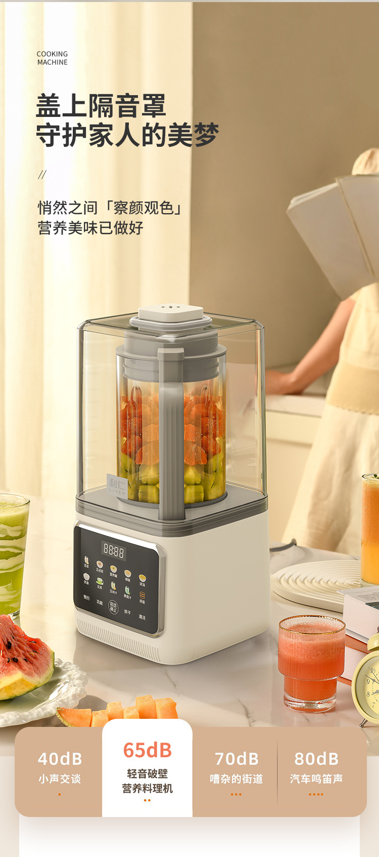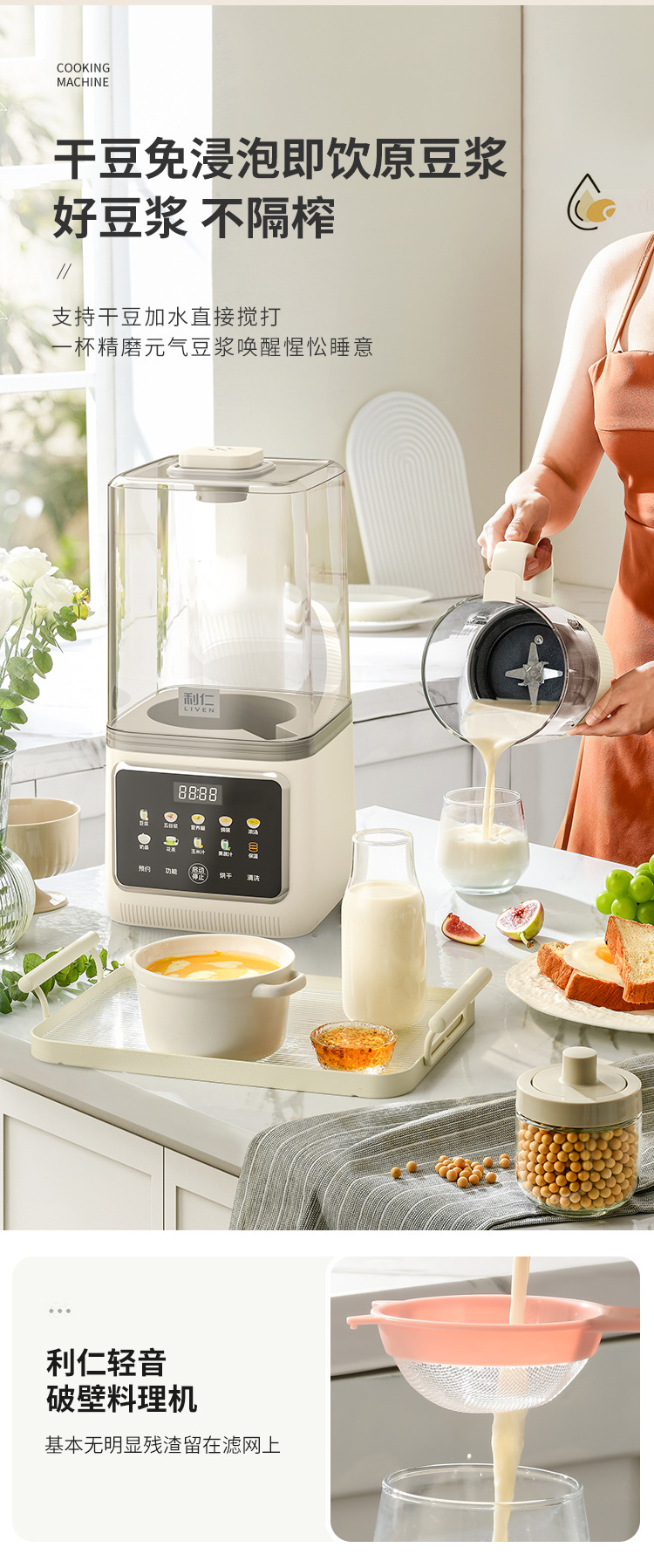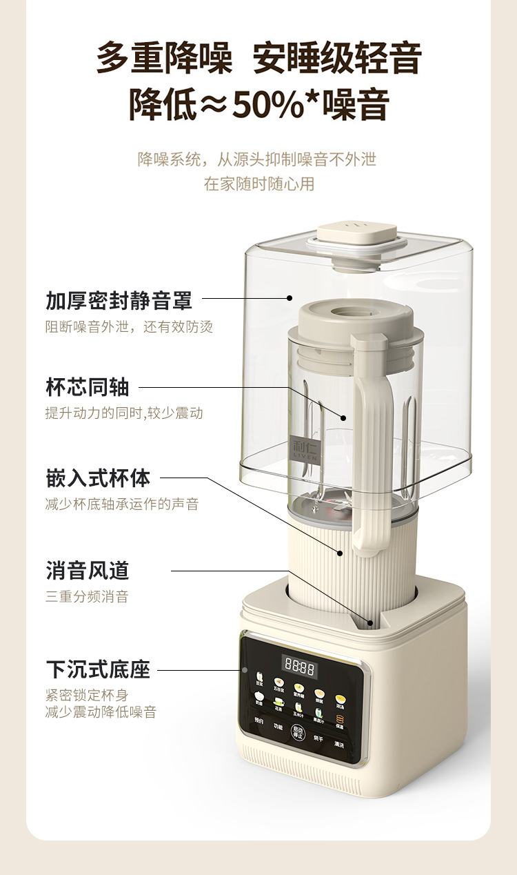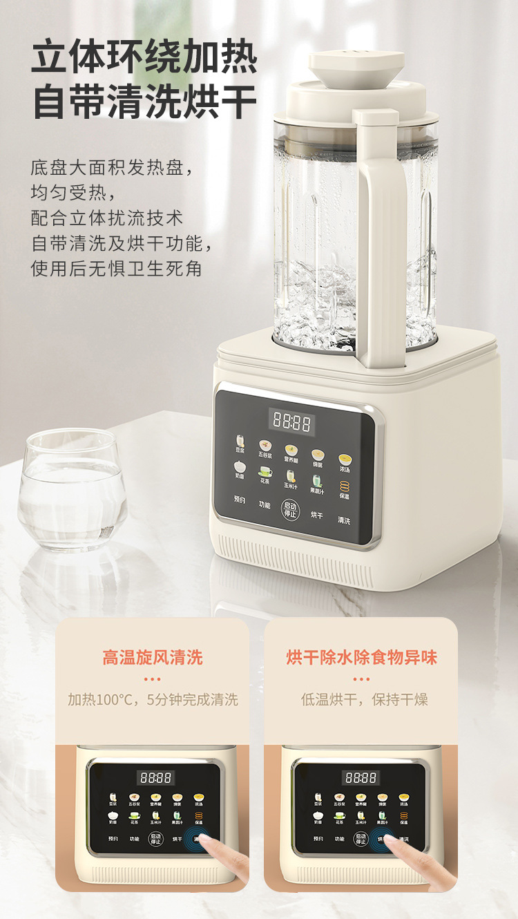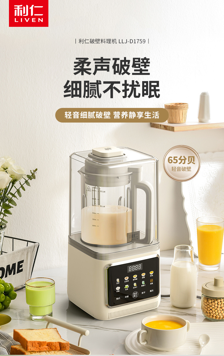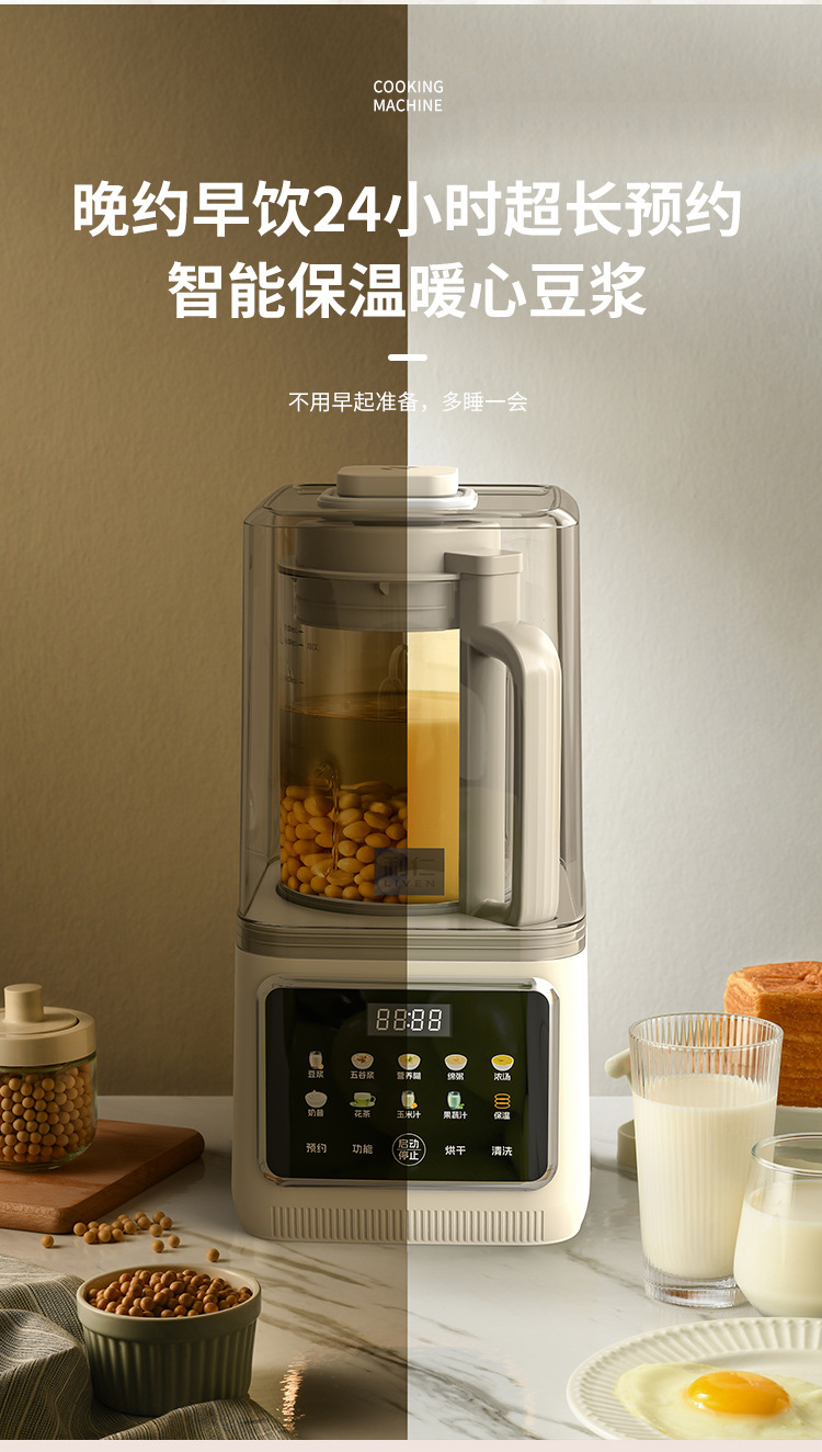 Liren [건조 및 살균] 가정용 대용량 벽파괴기 저음소음 감소 두유기 자동 가열 및 필터링 없음스토어 가기