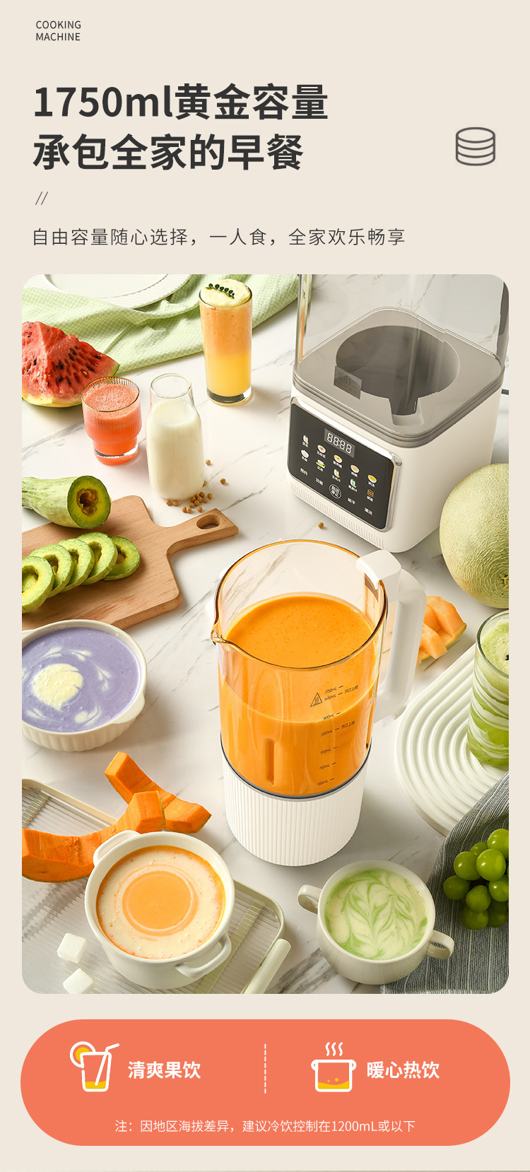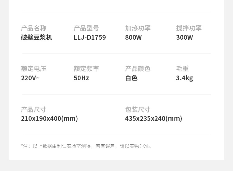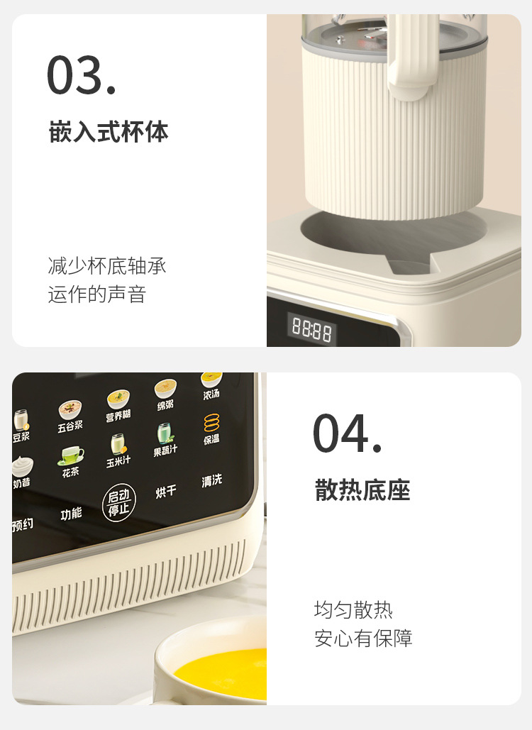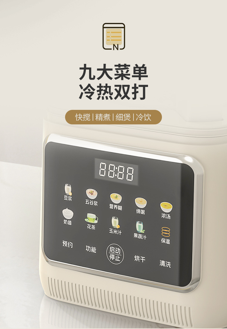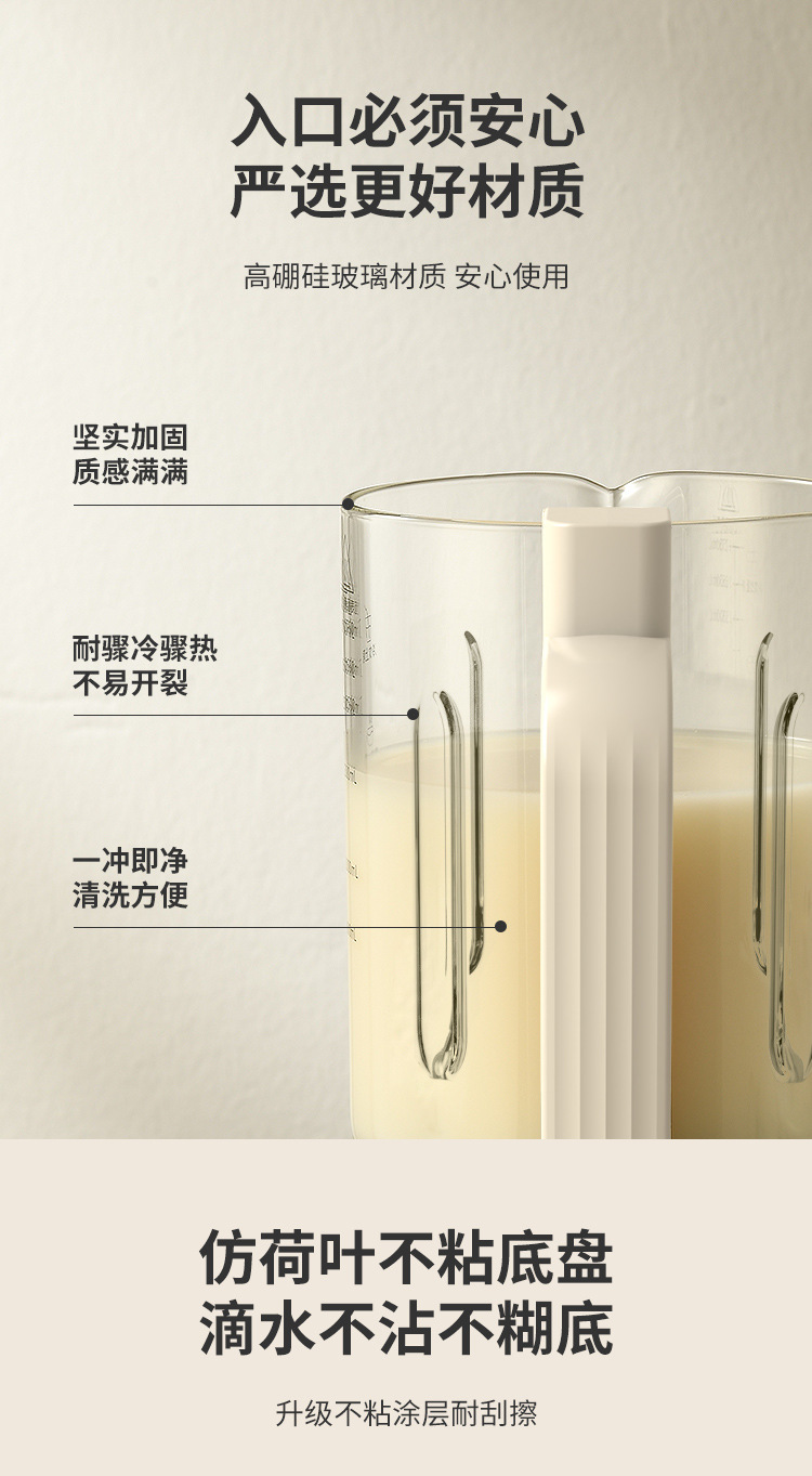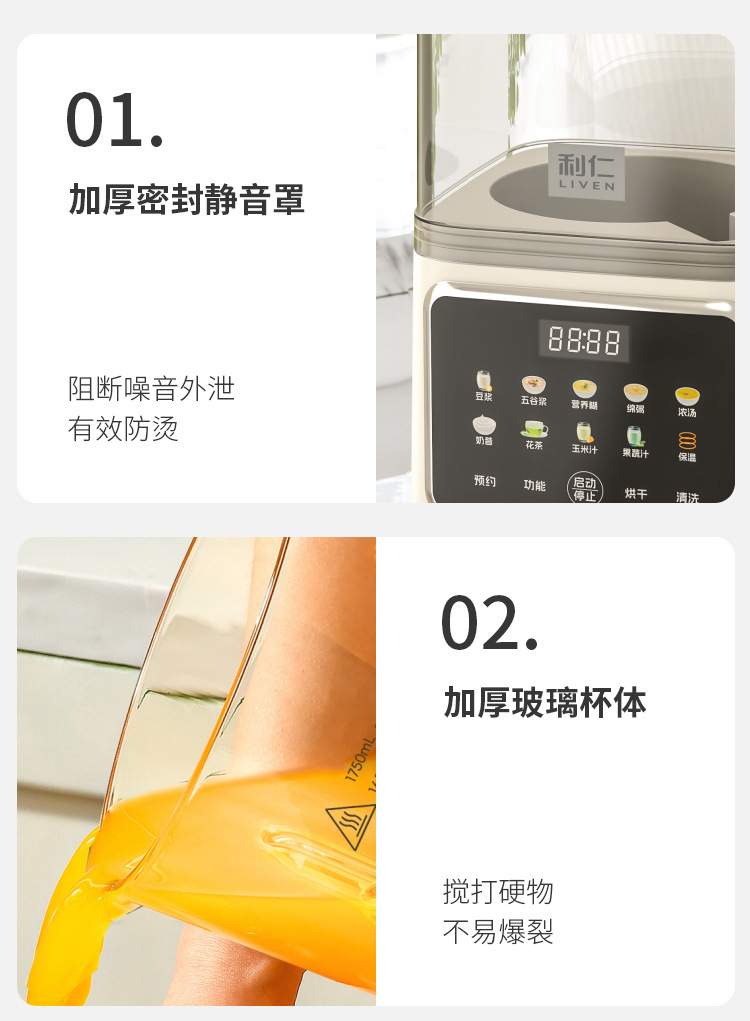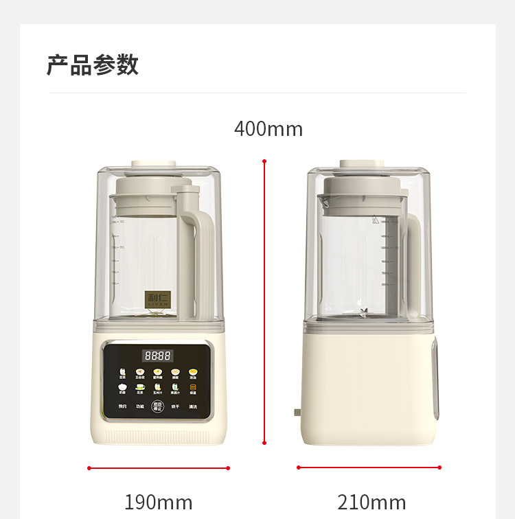 Liren [건조 및 살균] 가정용 대용량 벽파괴기 저음소음 감소 두유기 자동 가열 및 필터링 없음