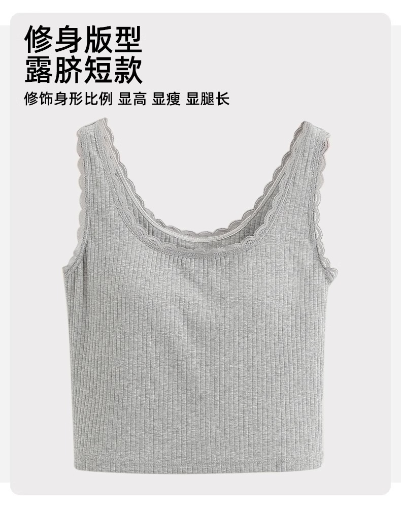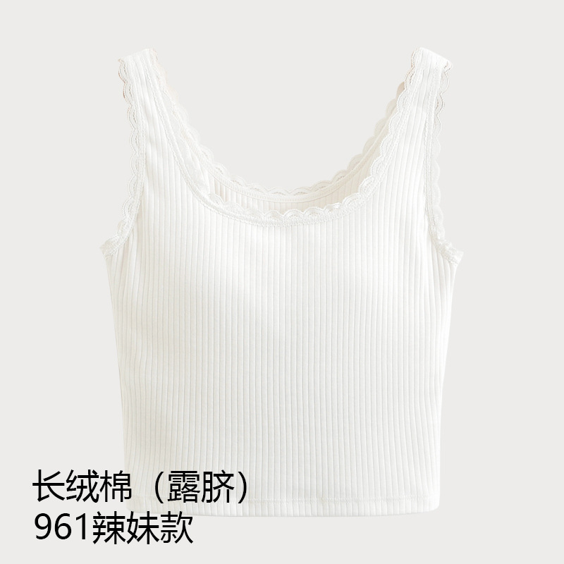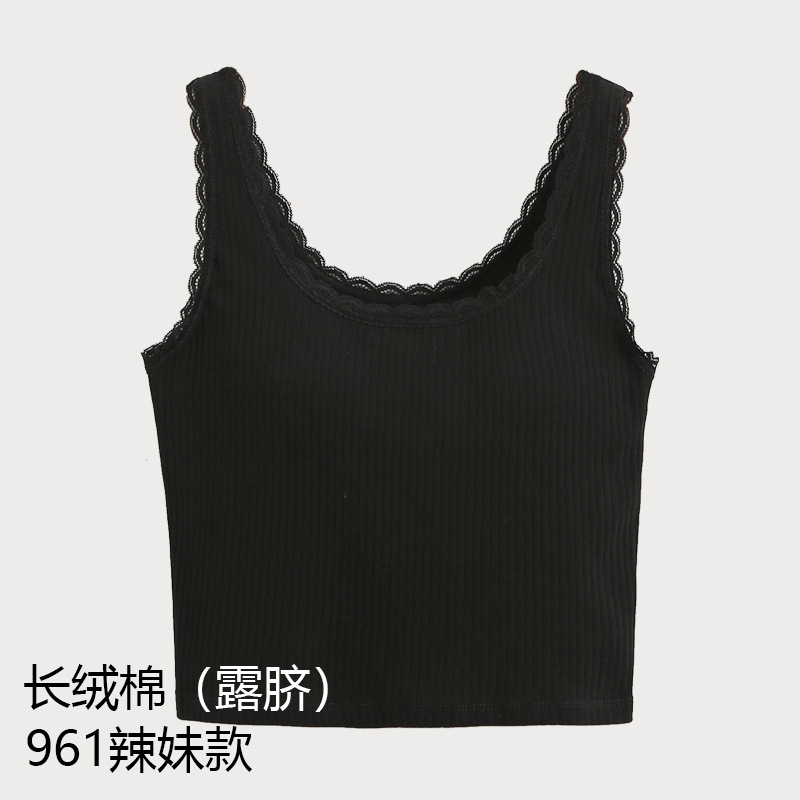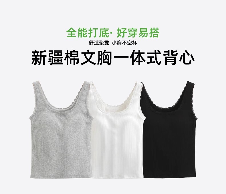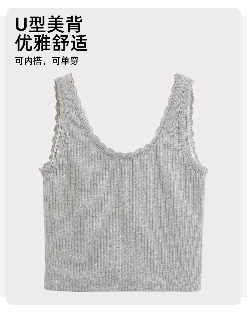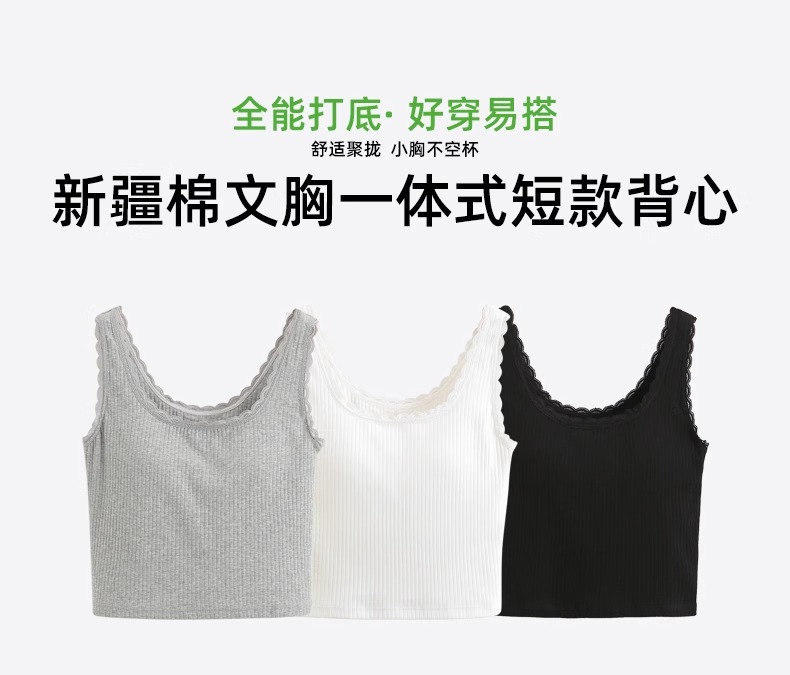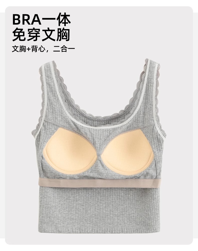 리스 면 레이스 아름다운 등 캐미솔 고정 컵 올인원 짧은 스타일 여성용 외부 및 내부 베이스 레이어 탑(가슴 패드 포함)스토어 가기