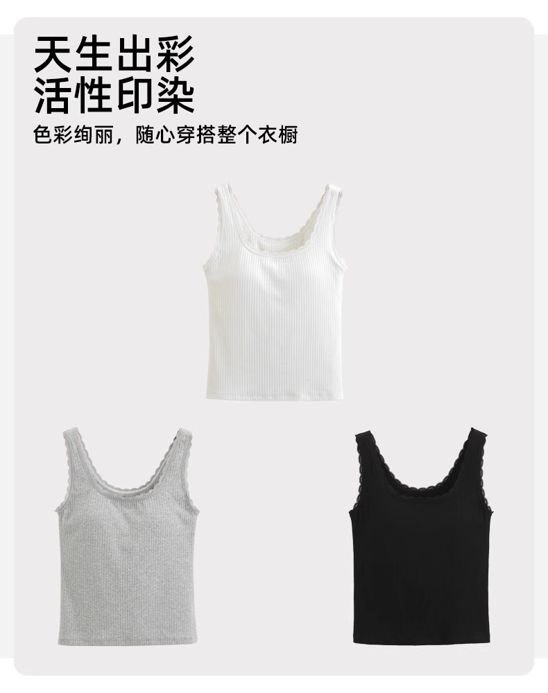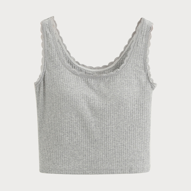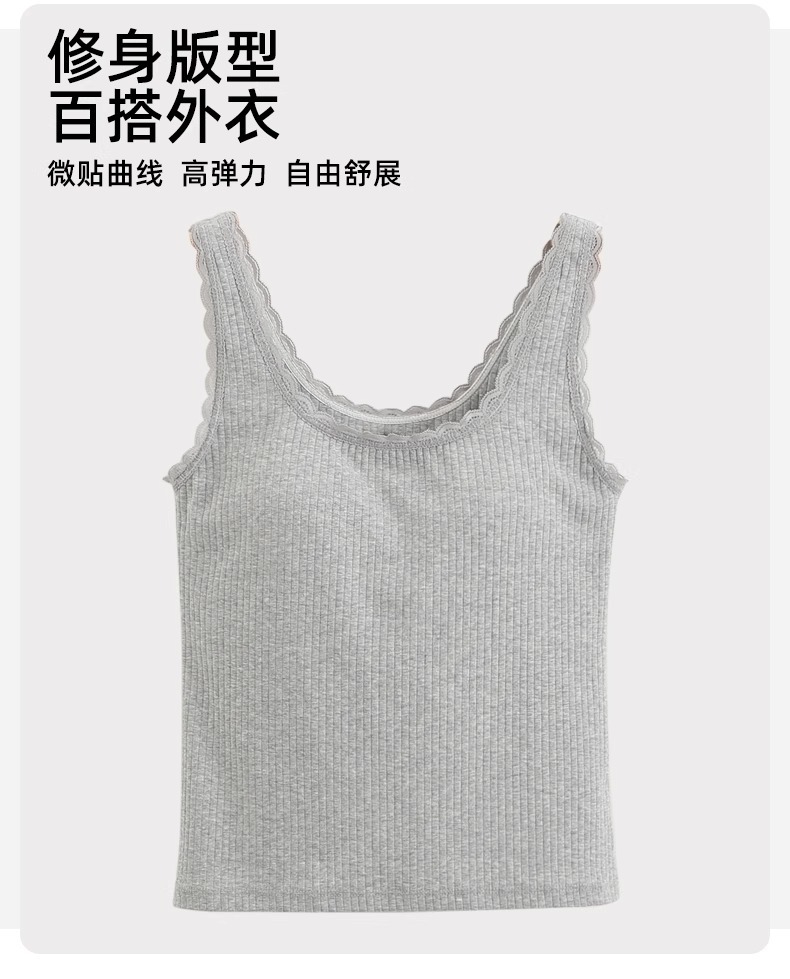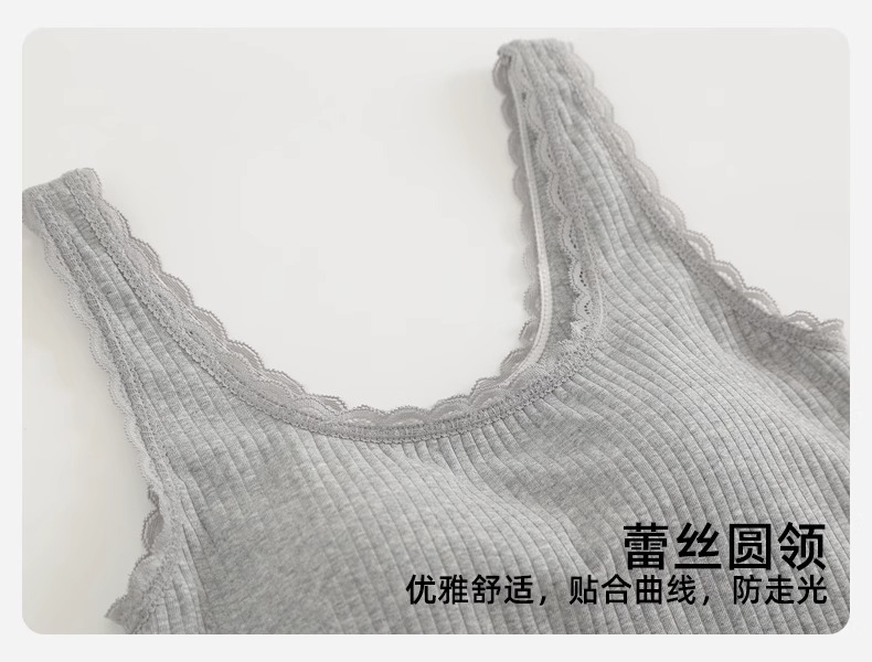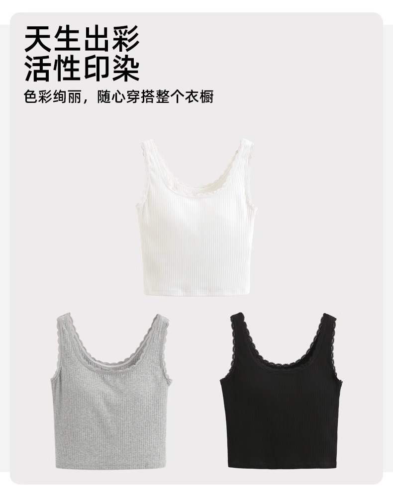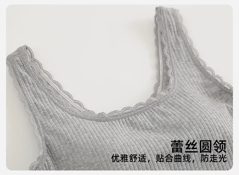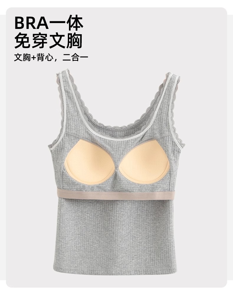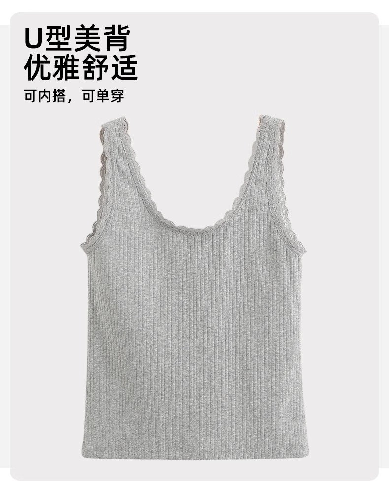 리스 면 레이스 아름다운 등 캐미솔 고정 컵 올인원 짧은 스타일 여성용 외부 및 내부 베이스 레이어 탑(가슴 패드 포함)스토어 가기