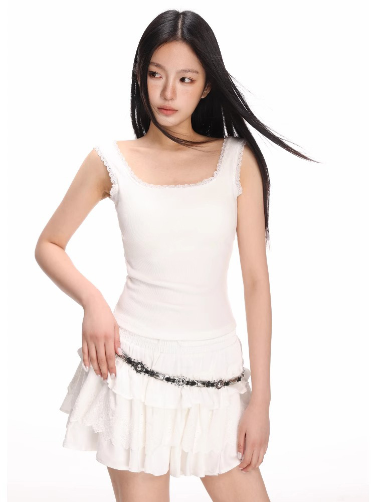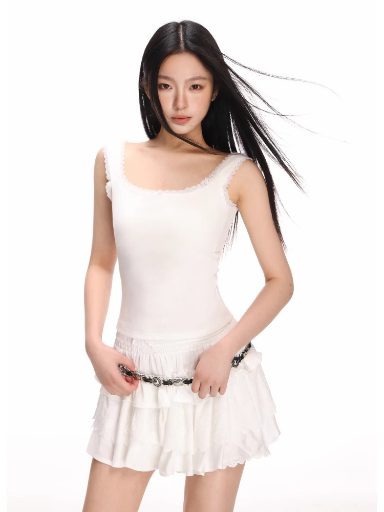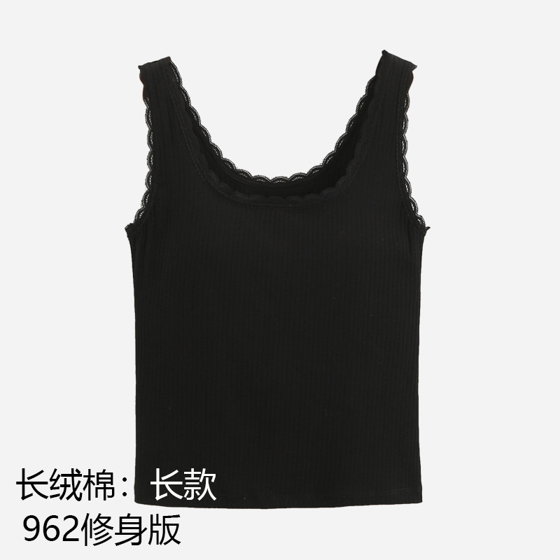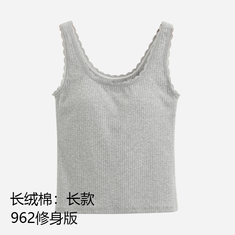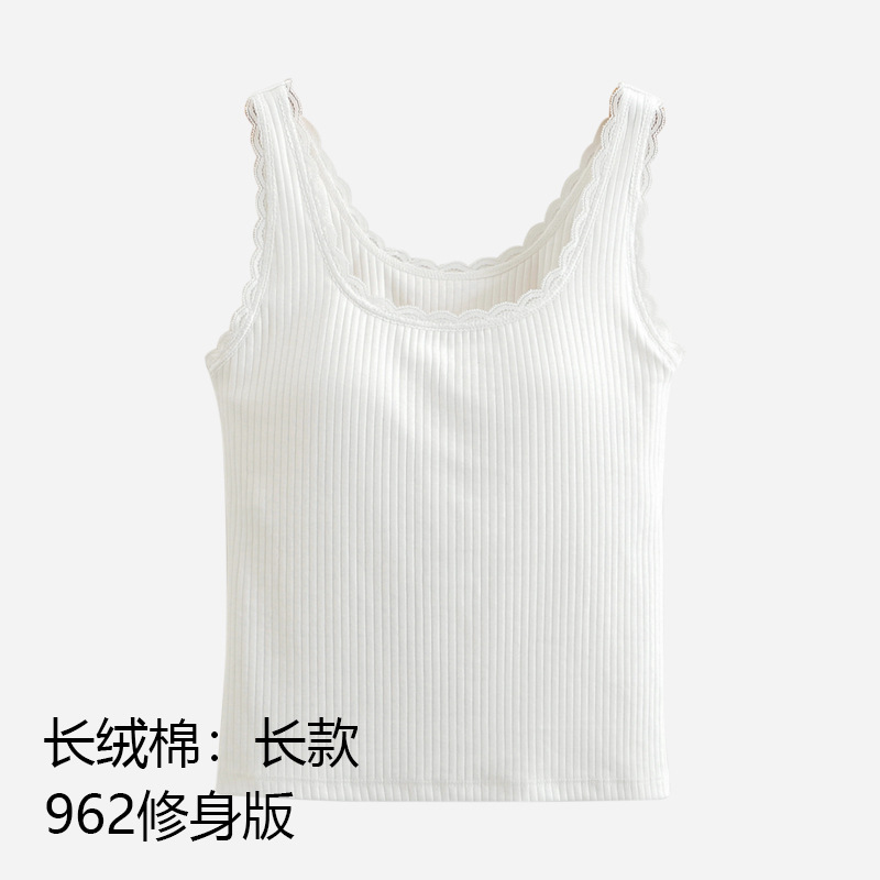 리스 면 레이스 아름다운 등 캐미솔 고정 컵 올인원 짧은 스타일 여성용 외부 및 내부 베이스 레이어 탑(가슴 패드 포함)