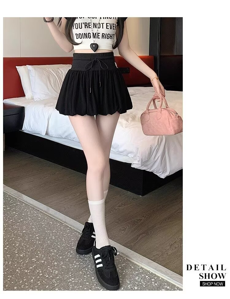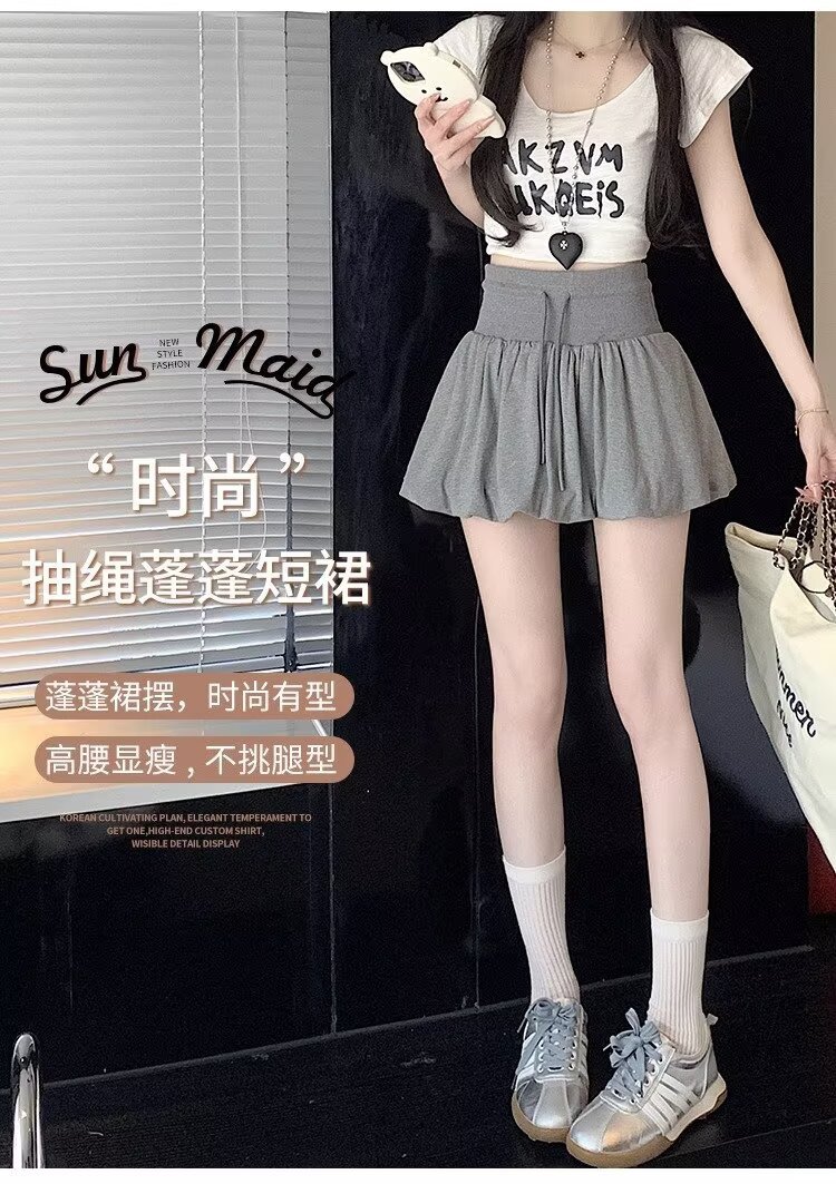 여름 여성을 위한 흰색 푹신한 꽃봉오리 스커트, 하이웨이스트 핫걸 미니 스커트, 작은 A라인 스포츠 숏 스커트스토어 가기