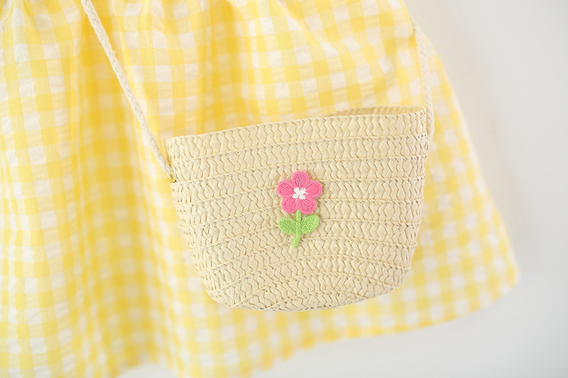 特点:格子 俩小花 送花朵竹篮包