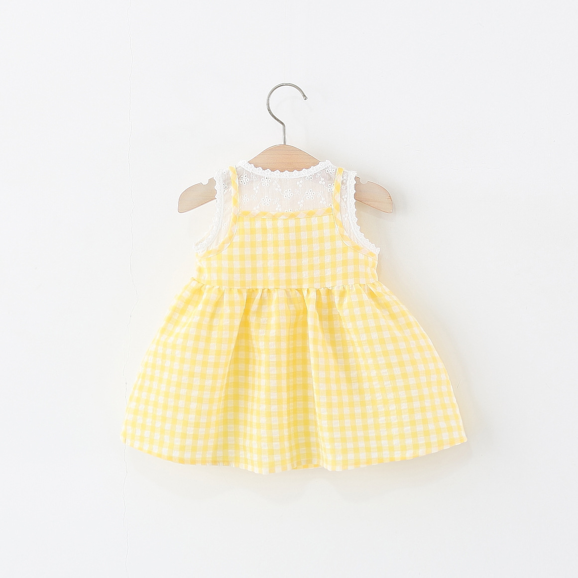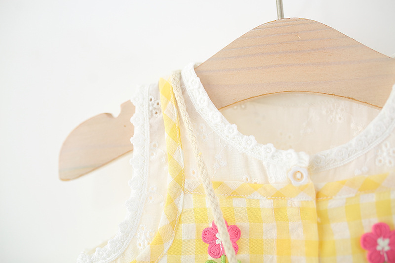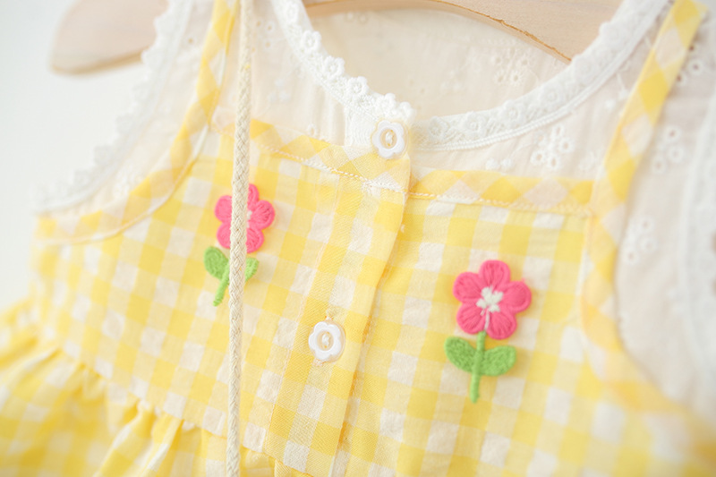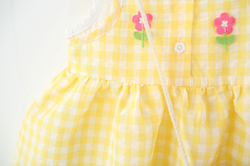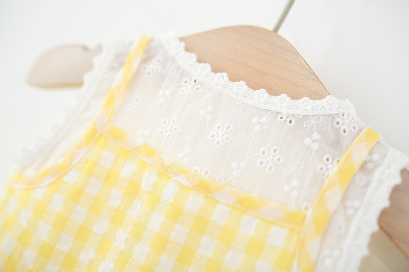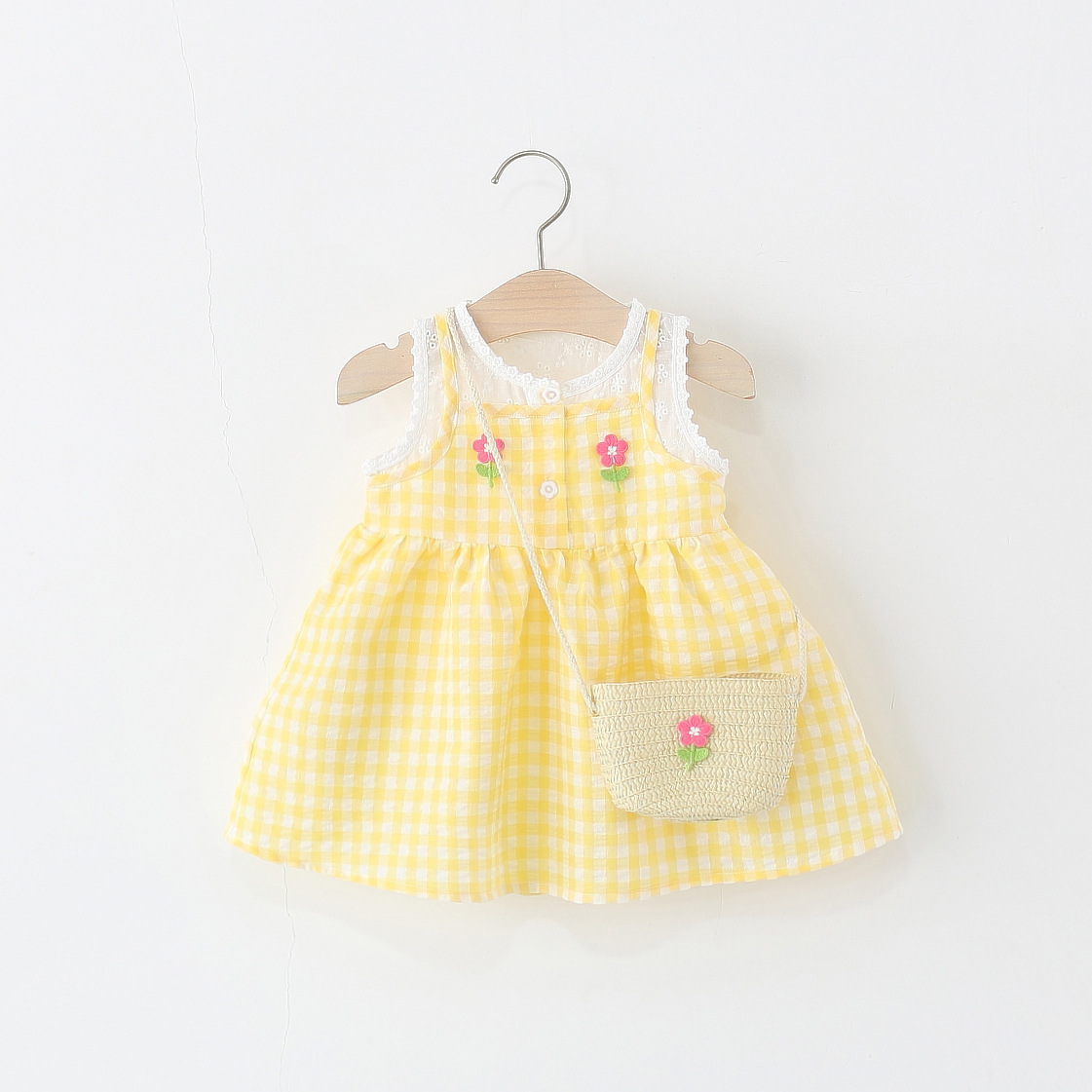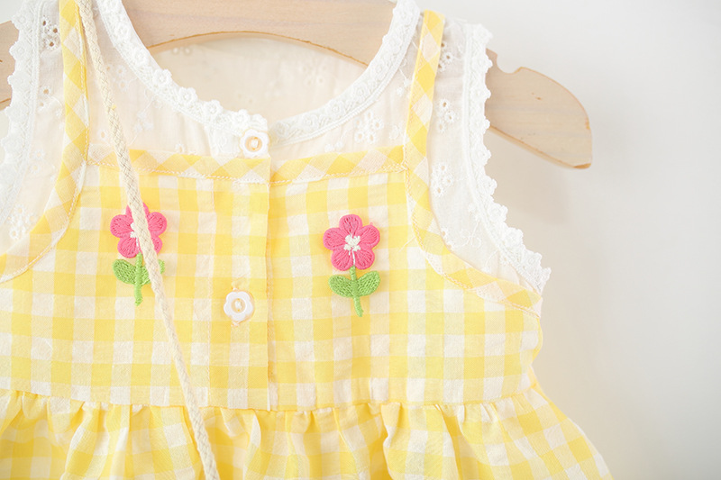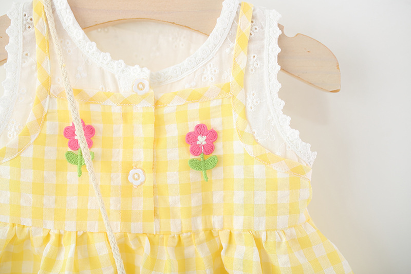 2025년 여름 신작 여아용 작은 격자 무늬 스커트, 레이스 스플라이스 격자 무늬 스커트, 무료 대나무 바구니 가방스토어 가기