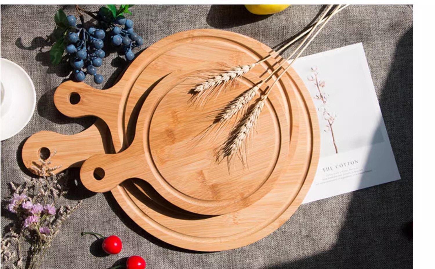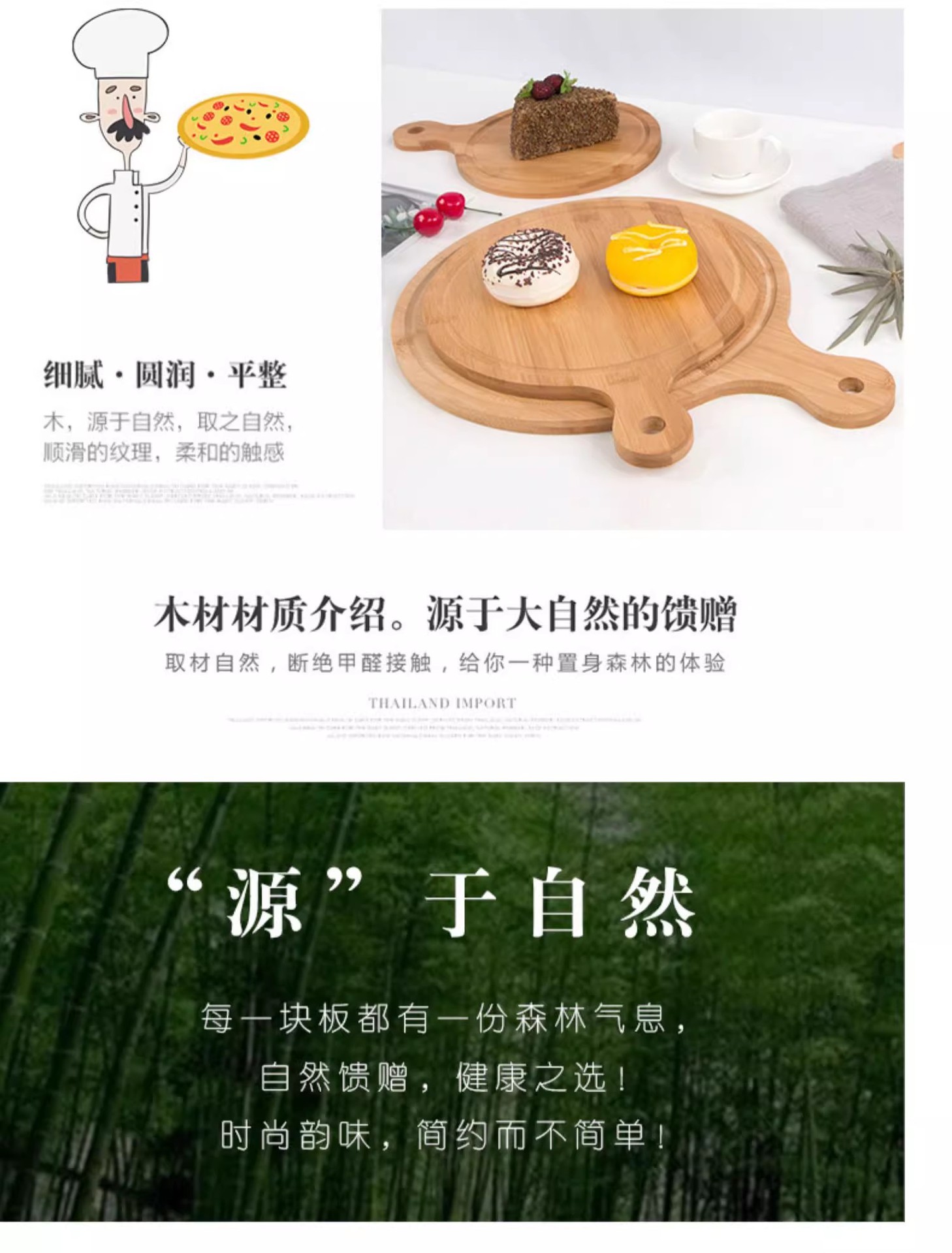손잡이를 가진 단단한 나무 피자 가구 대나무 초밥 케이크 서양 음식 나무 트레이 식기 피자 접시 디너 플레이트