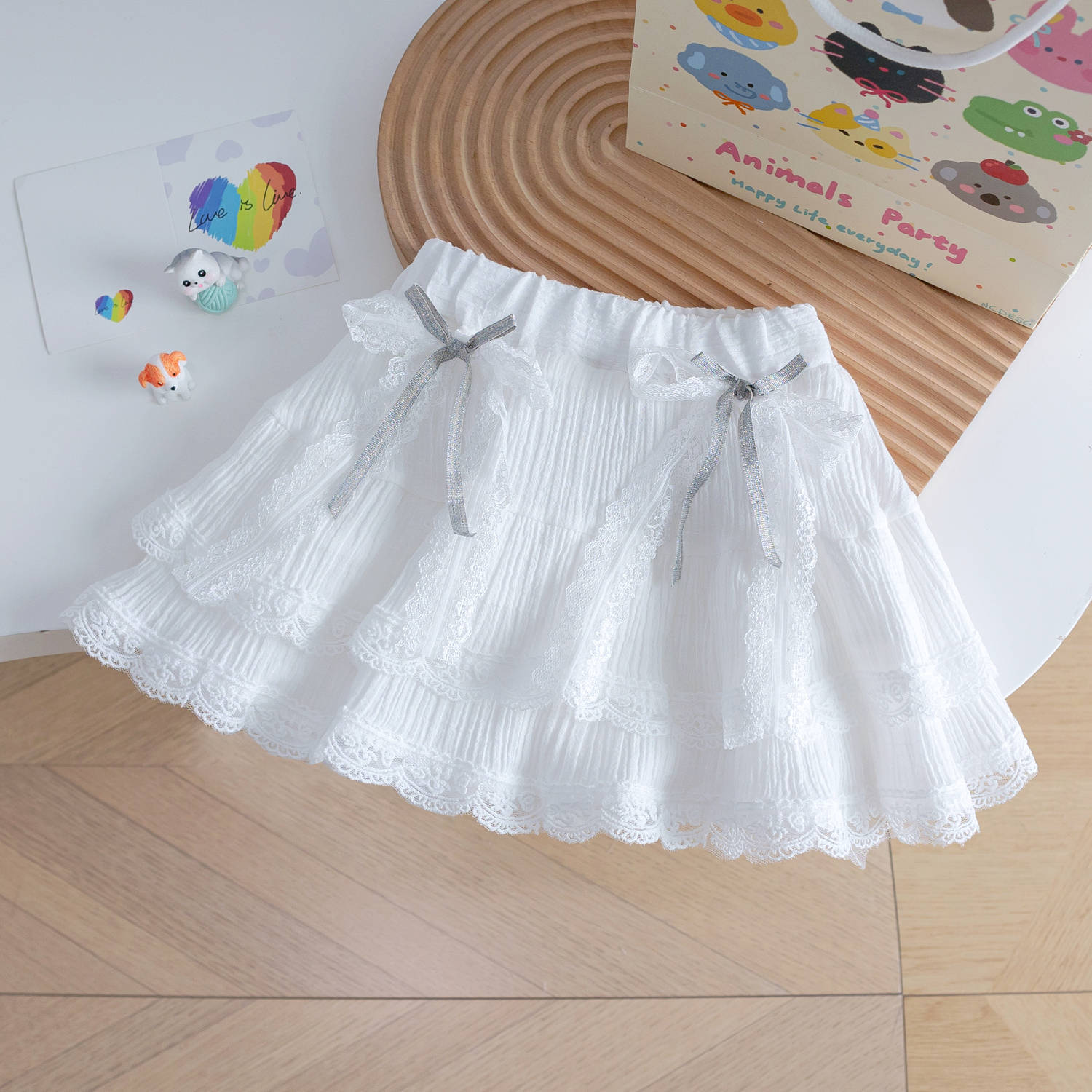 어린 소녀 유치원 여름 요정 레이스 레이스 신선한 블루 조끼 셔츠 세련된 올 매치 스커트 투피스 세트
