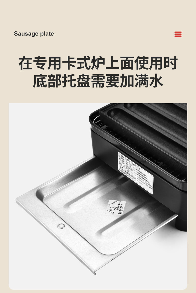 • U자형 단일용 소시지 그릴 + 소시지 플레이트(6개 세트 포함)