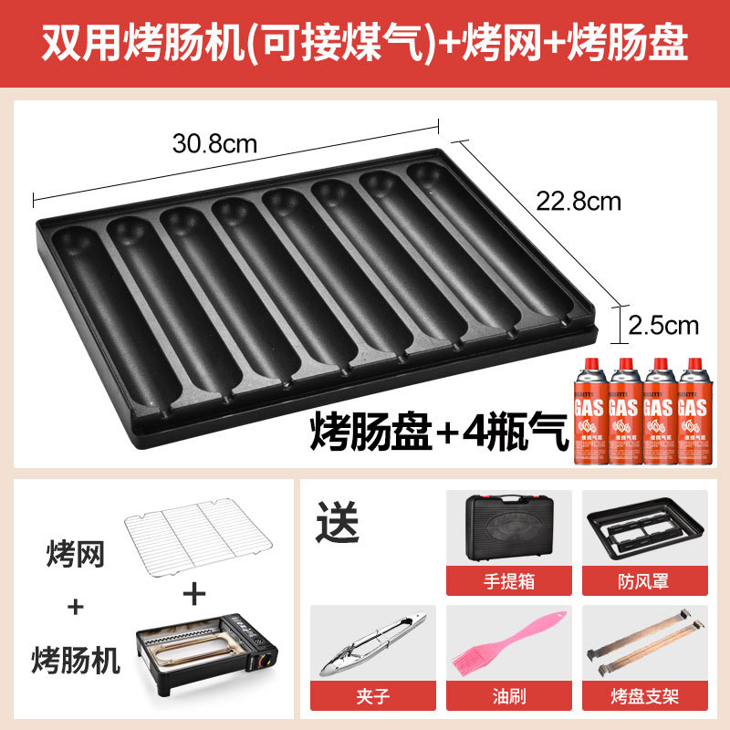 • 스톨 세팅 풀세트 - [U자형 불 - 겸용 소시지 굽는 기계 + 가스 4병] + 오일노즐이 있는 소시지 굽는 팬