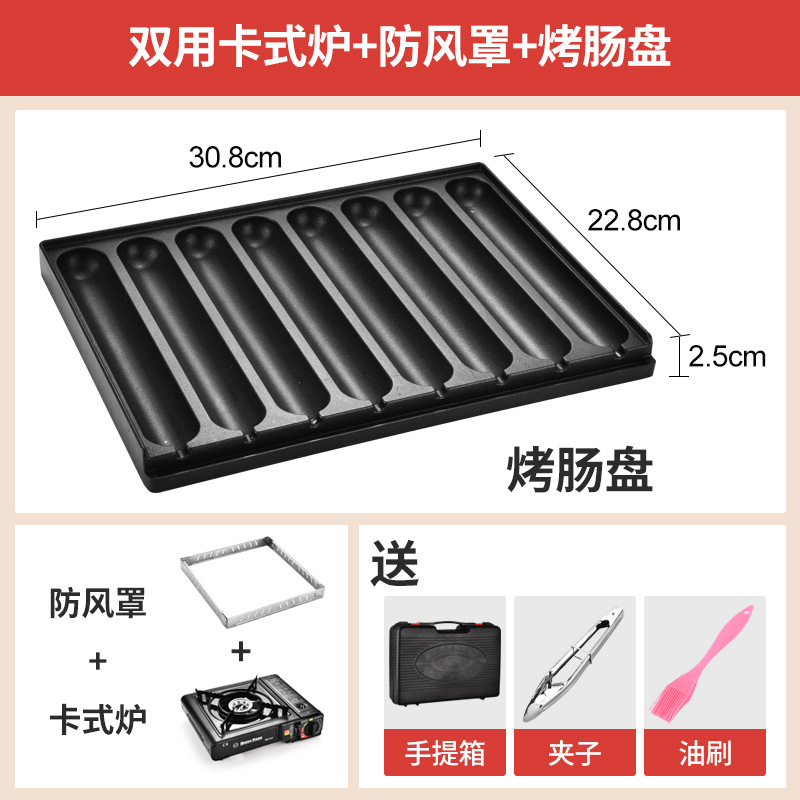 • (초보자용 입문모델) 오일노즐이 있는 소시지 그릴 플레이트 + 원형 화재 겸용 카세트 스토브 + 방풍 커버 (무료 4종 세트)