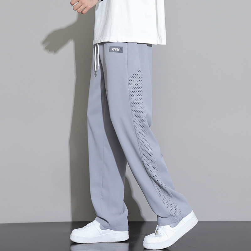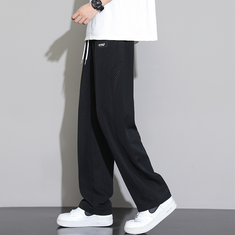 남성용 여름 아이스 실크 속건 캐주얼 바지, 학생용 홍콩 스타일 트렌디 루즈 슬리밍 하이 스트레이트 드레이프 바지
