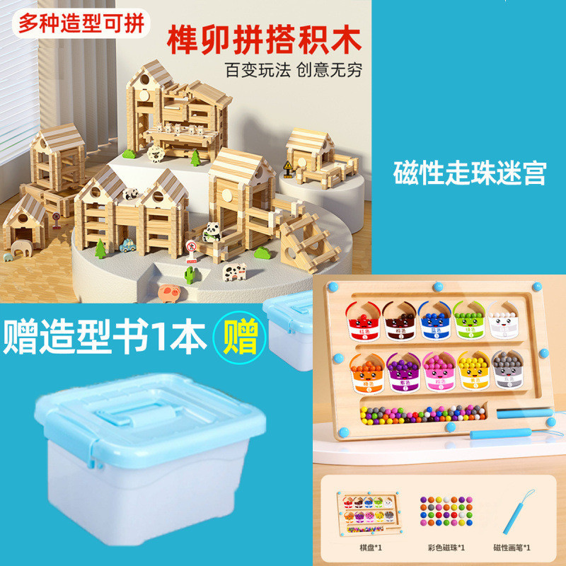 • [재미있는 빌딩 블록 116피스 보관함] + 자기 미로
