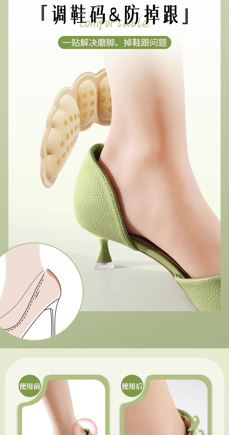 발뒤꿈치 스티커, 발뒤꿈치 미끄럼 방지, 미끄럼 방지 및 마모 방지 발 스티커, 하이힐, 하프 사이즈 패드, 여성용 신발, 큰 사이즈에서 작은 사이즈로 변경, 접착제로 신발 사이즈 조절