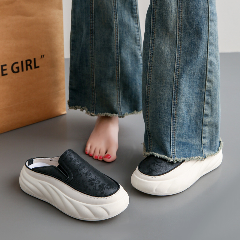여름 중국 스타일 자수 인기 하프 슬리퍼 여성 신발 패션 인터넷 연예인 새로운 패션 서양식 캐주얼 여성 슬리퍼 샌들