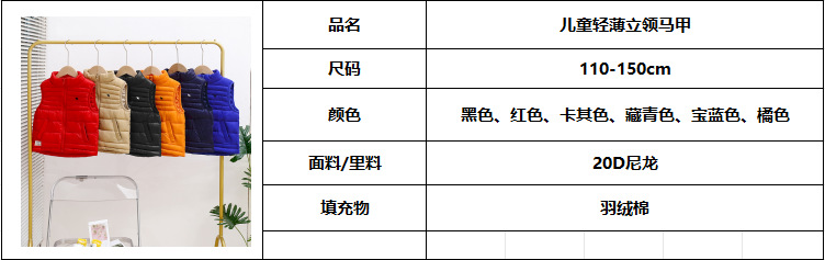 국경 간 가을, 겨울 어린이 면화 조끼, 가볍고 얇은 스탠드 칼라, 중소형 아동용 조끼, 아동복, 따뜻한 모조 다운 면화 조끼