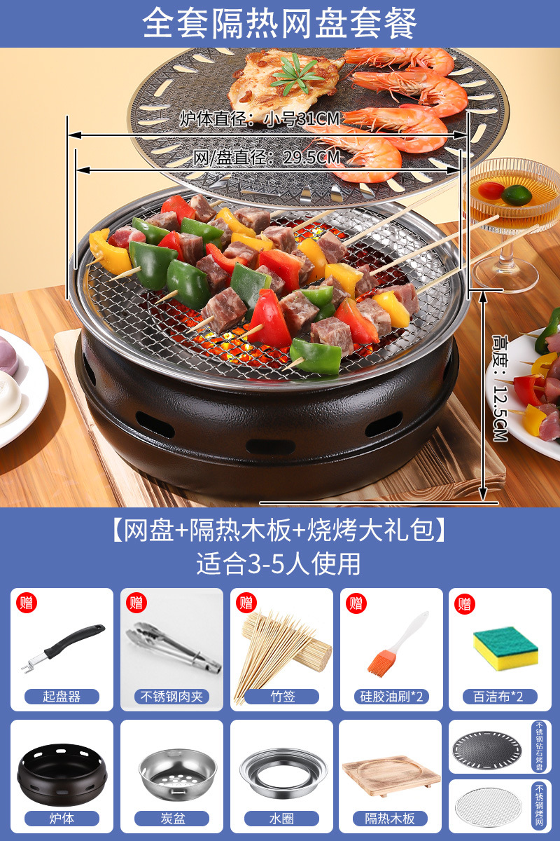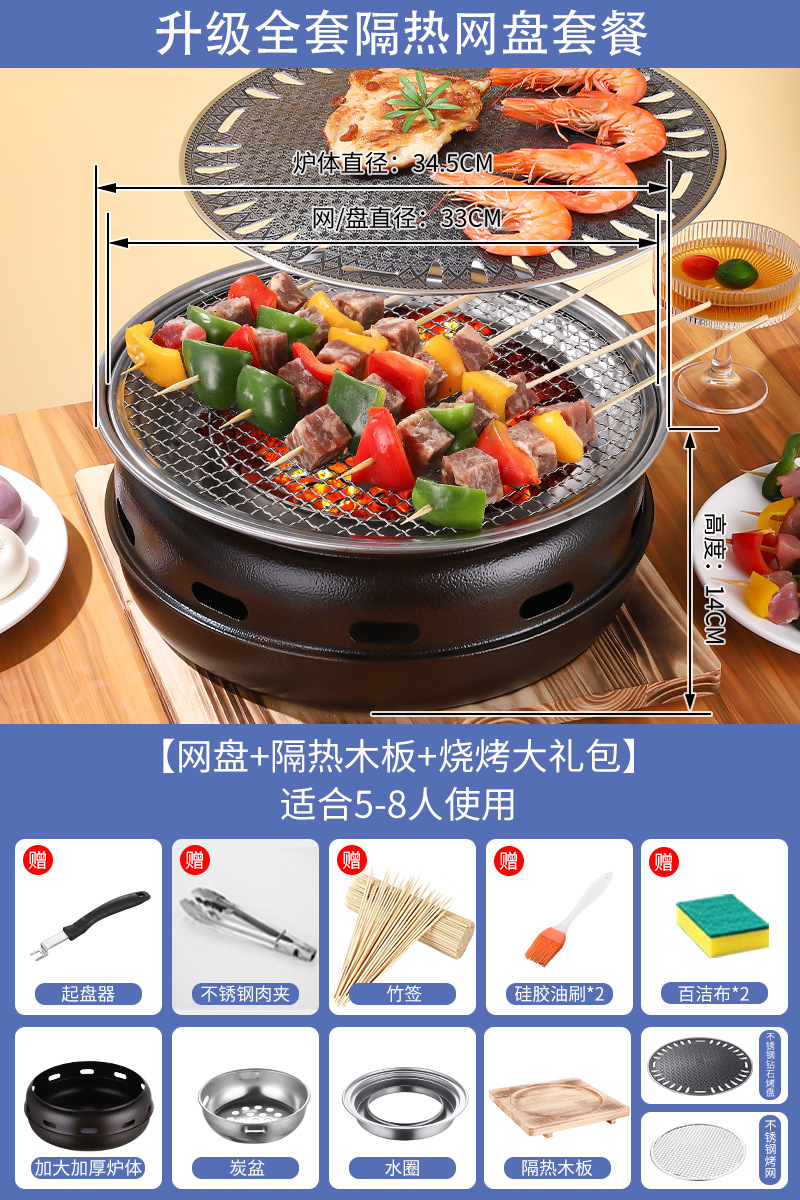한국 바베큐 그릴 가정용 상업용 탄소 그릴 일본 숯 바베큐 스토브 실내 무연 바베큐 냄비 야외 그릴스토어 가기