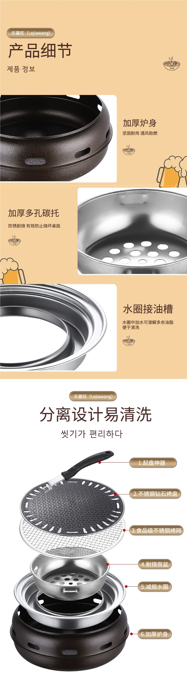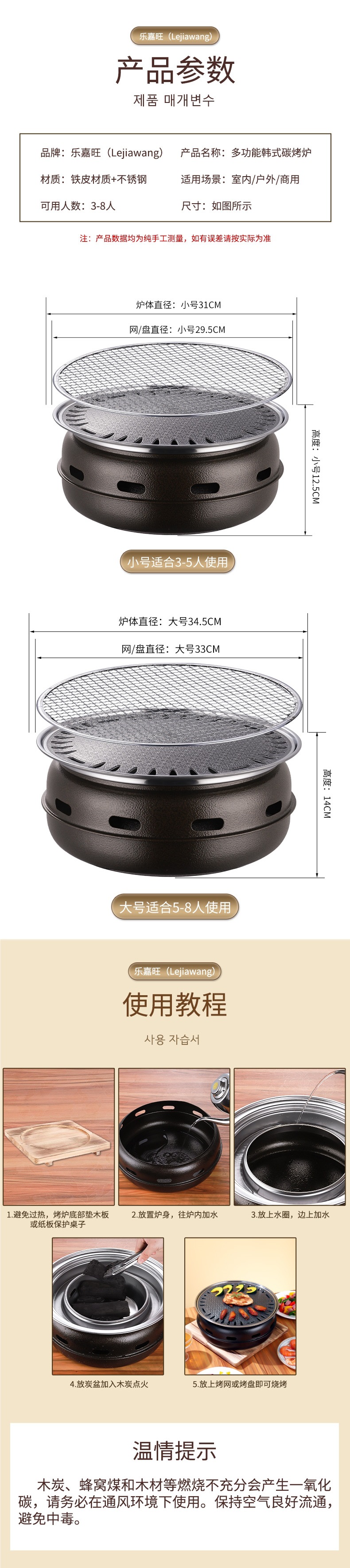 한국 바베큐 그릴 가정용 상업용 탄소 그릴 일본 숯 바베큐 스토브 실내 무연 바베큐 냄비 야외 그릴
