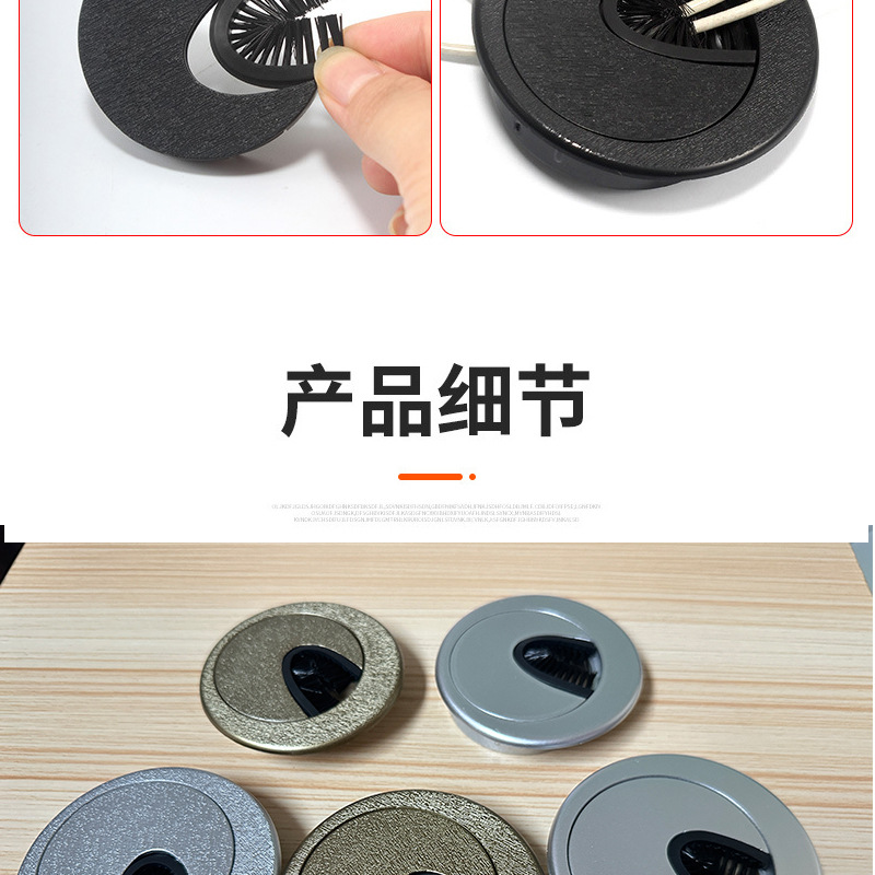 高档塑料办公电脑桌穿线盒过线盖走线遮丑盖60/65/80遮线盖线孔盖