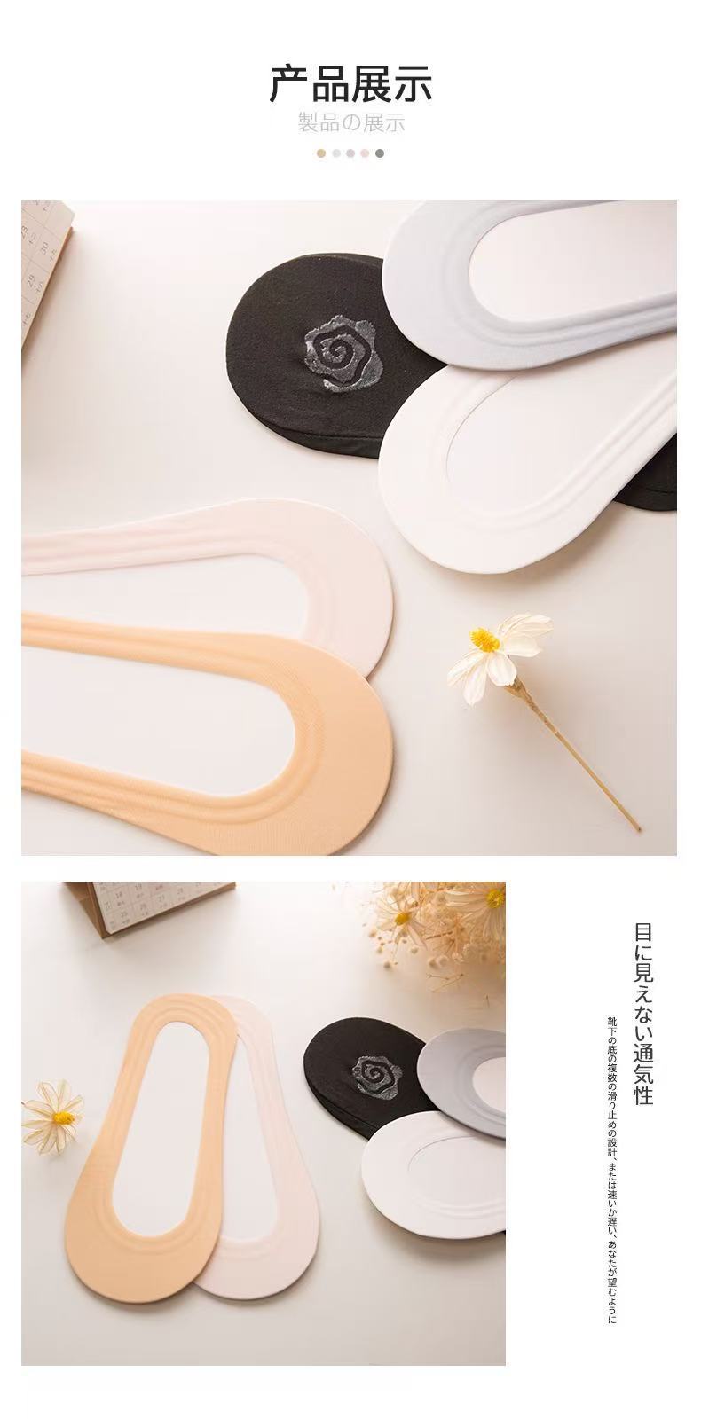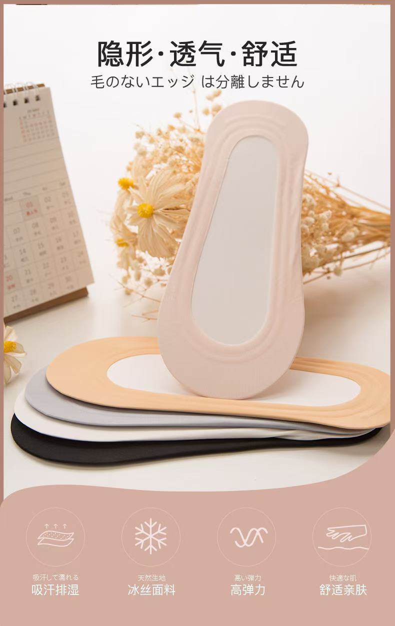 Lan Fengling 원활한 아이스 실크 보트 양말 올 매치 솔리드 컬러 보이지 않는 여성용 양말 실리콘 미끄럼 방지 여성용 보트 양말 얕은 탑 양말 캐주얼