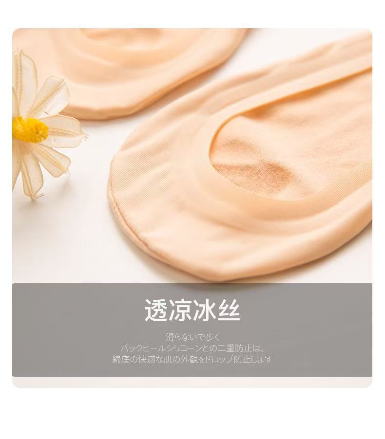 Lan Fengling 원활한 아이스 실크 보트 양말 올 매치 솔리드 컬러 보이지 않는 여성용 양말 실리콘 미끄럼 방지 여성용 보트 양말 얕은 탑 양말 캐주얼스토어 가기