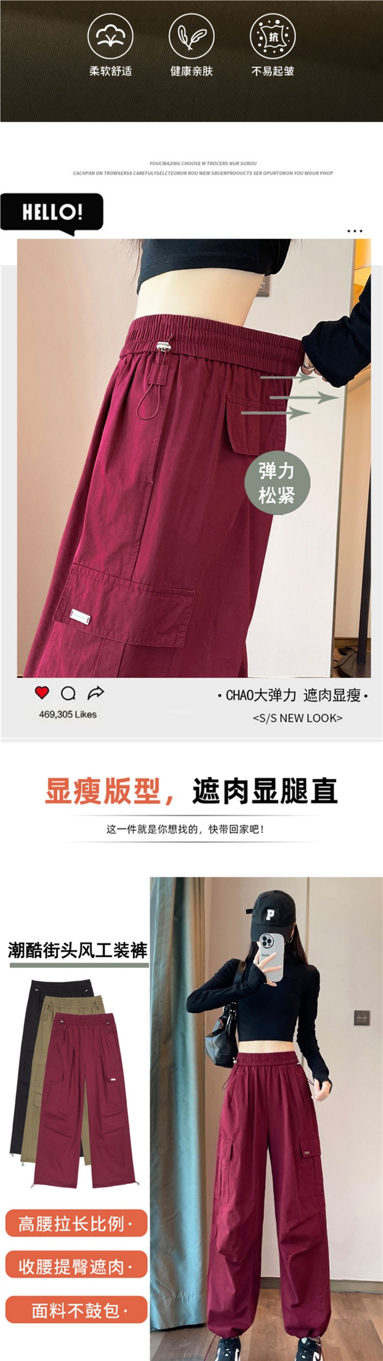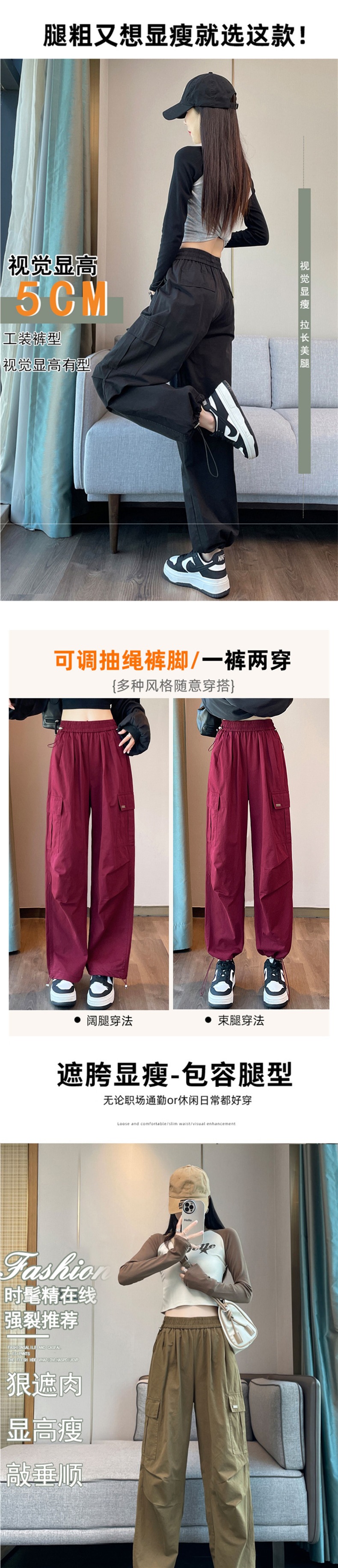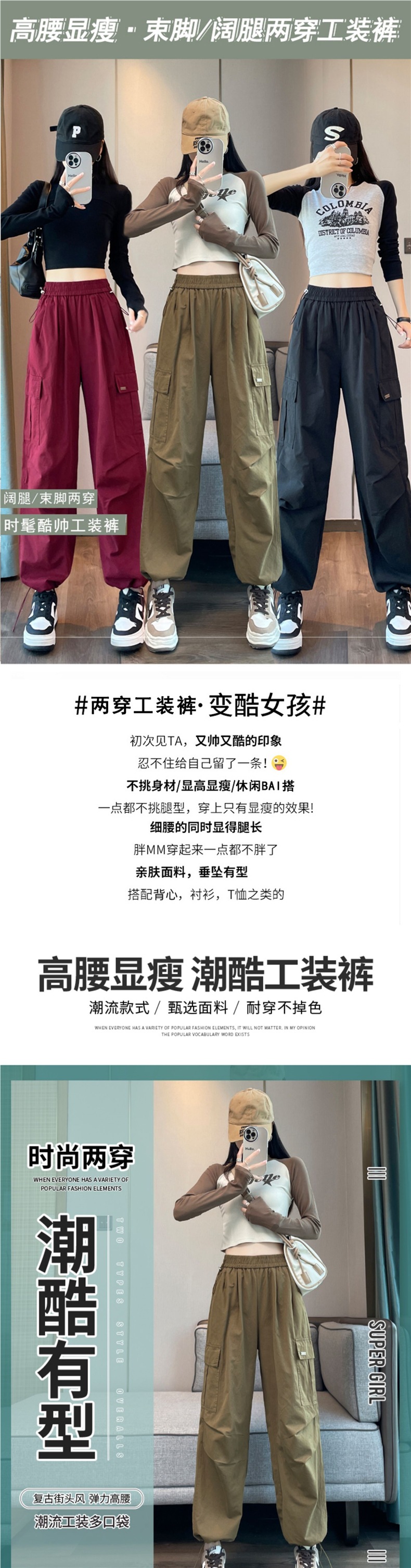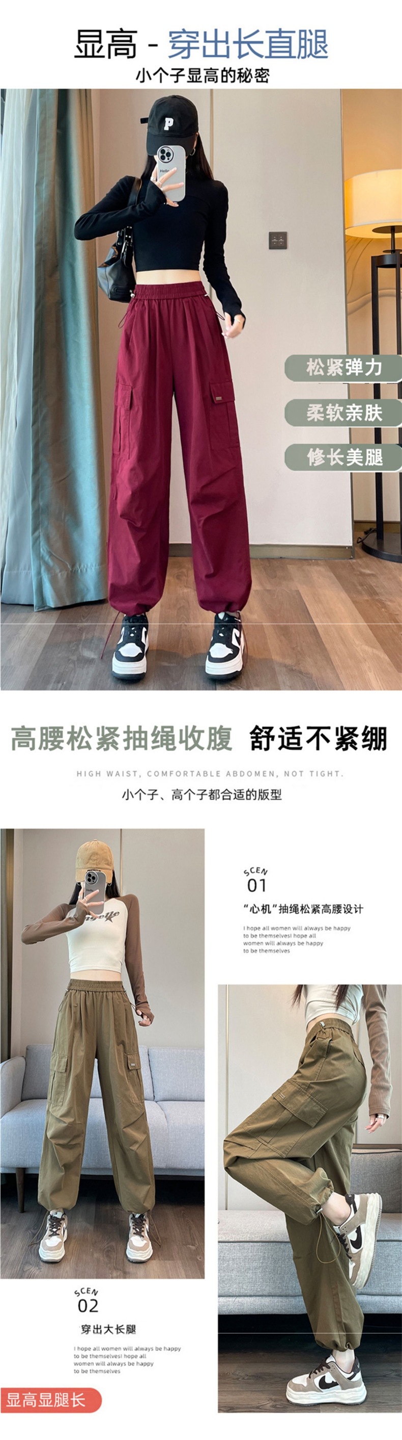 여성을 위한 안코라 레드 하이웨이스트 오버올, 가을 신상품, 슬림한 몸매를 위한 아메리칸 하이킹 스포츠 팬츠스토어 가기