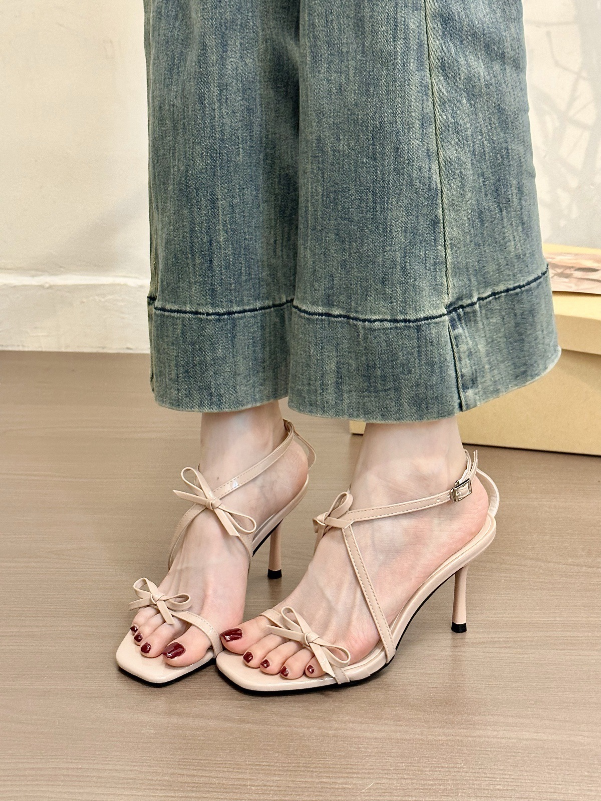 순수한 욕망의 아름다움의 신! 여성용 스퀘어 토 보우 스트랩 슬림 힐 샌들 여름 오픈 토우 하이힐 샌들스토어 가기