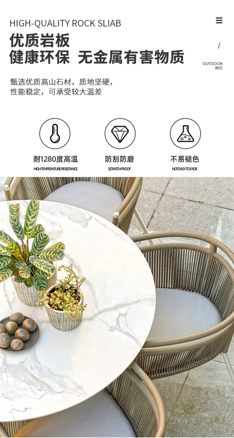 야외 빌라 등나무 테이블과 의자, 안뜰 레스토랑 호텔 테이블과 의자, 야외 정원 고급 슬레이트 가구 테이블과 의자