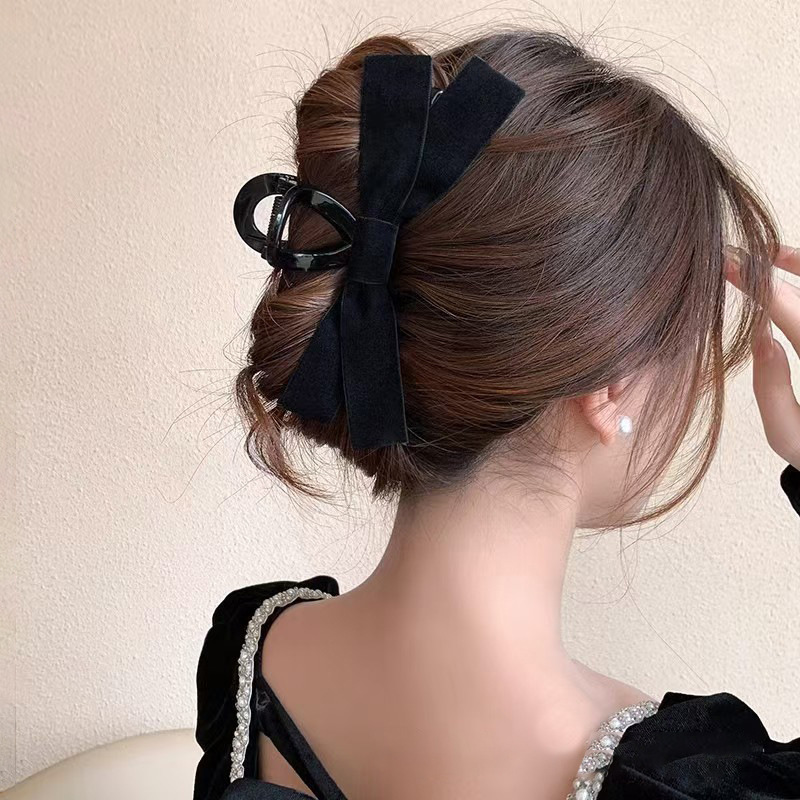 새로운 블랙 리본 머리핀 여성용 고급스러운 헤어 스타일링 샤크 클립 인기 헤어핀 뒷머리 장식 우아함스토어 가기