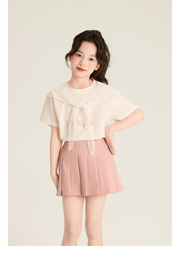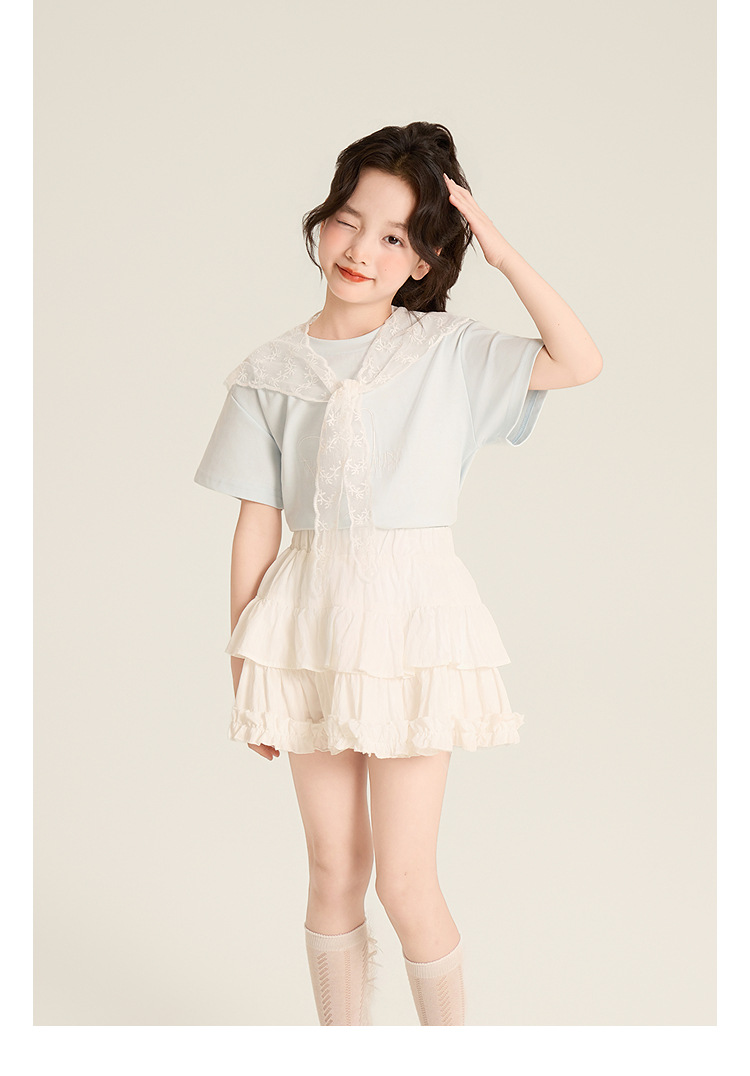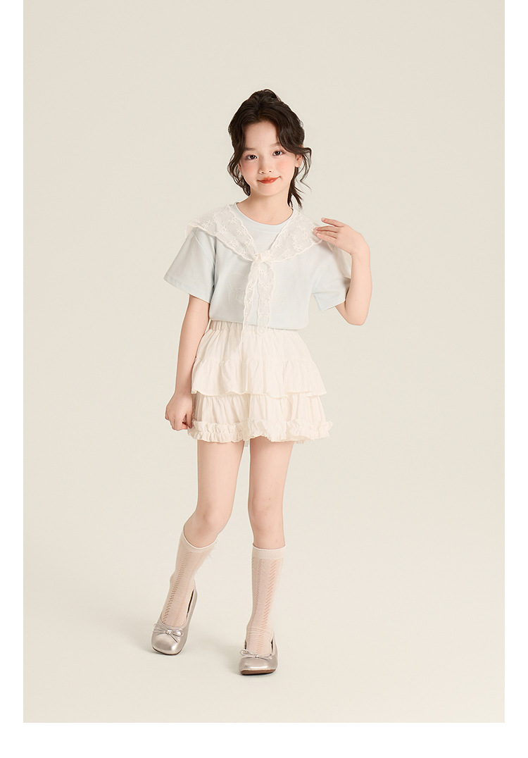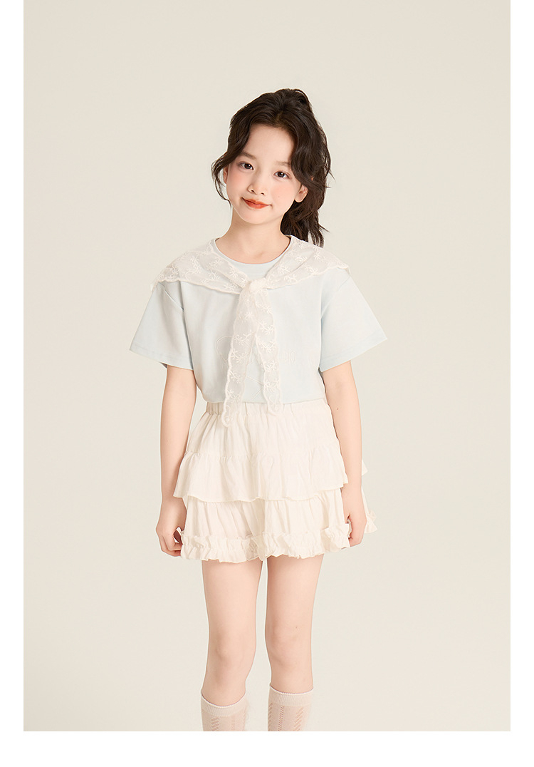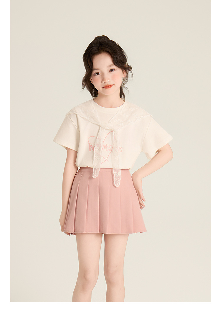 Amybaby Girls 'Top Summer 2025 새로운 스타일 Dopamine Mori 레이스 숄 스타일 러브 티셔츠