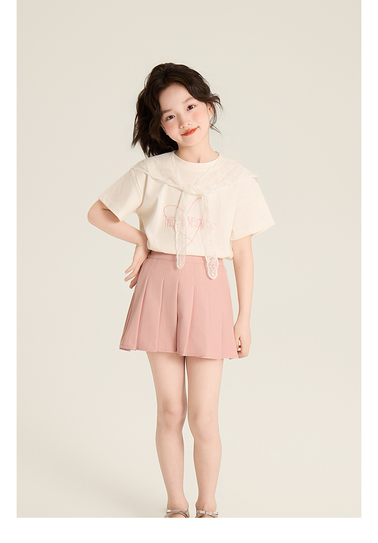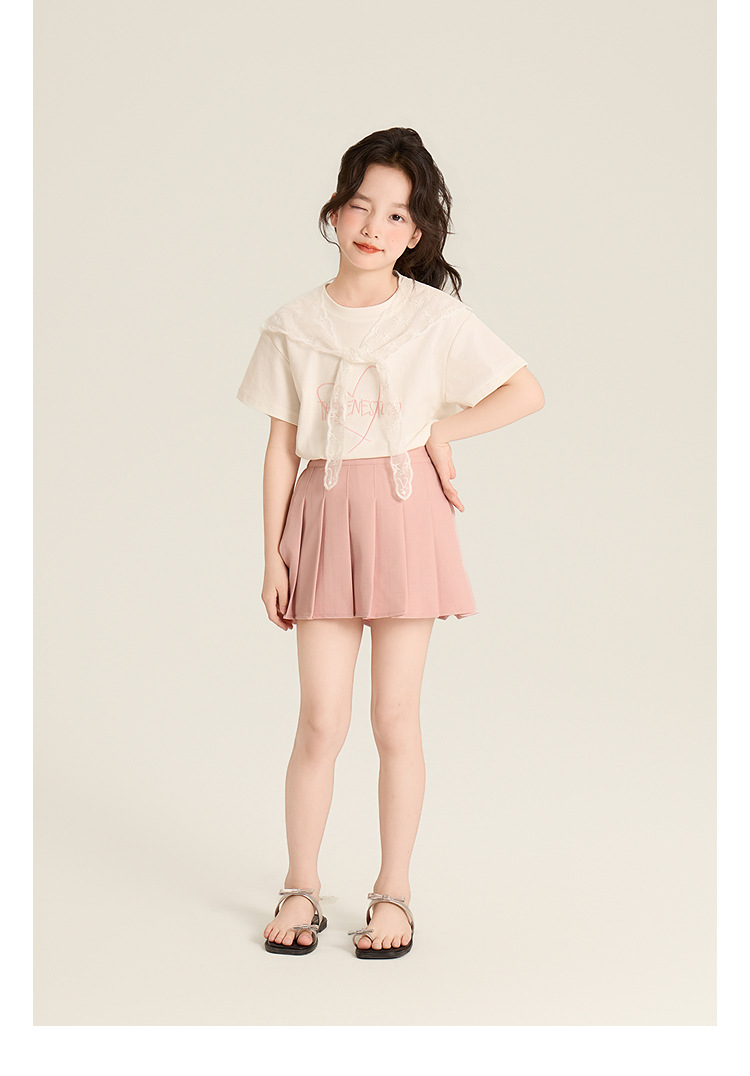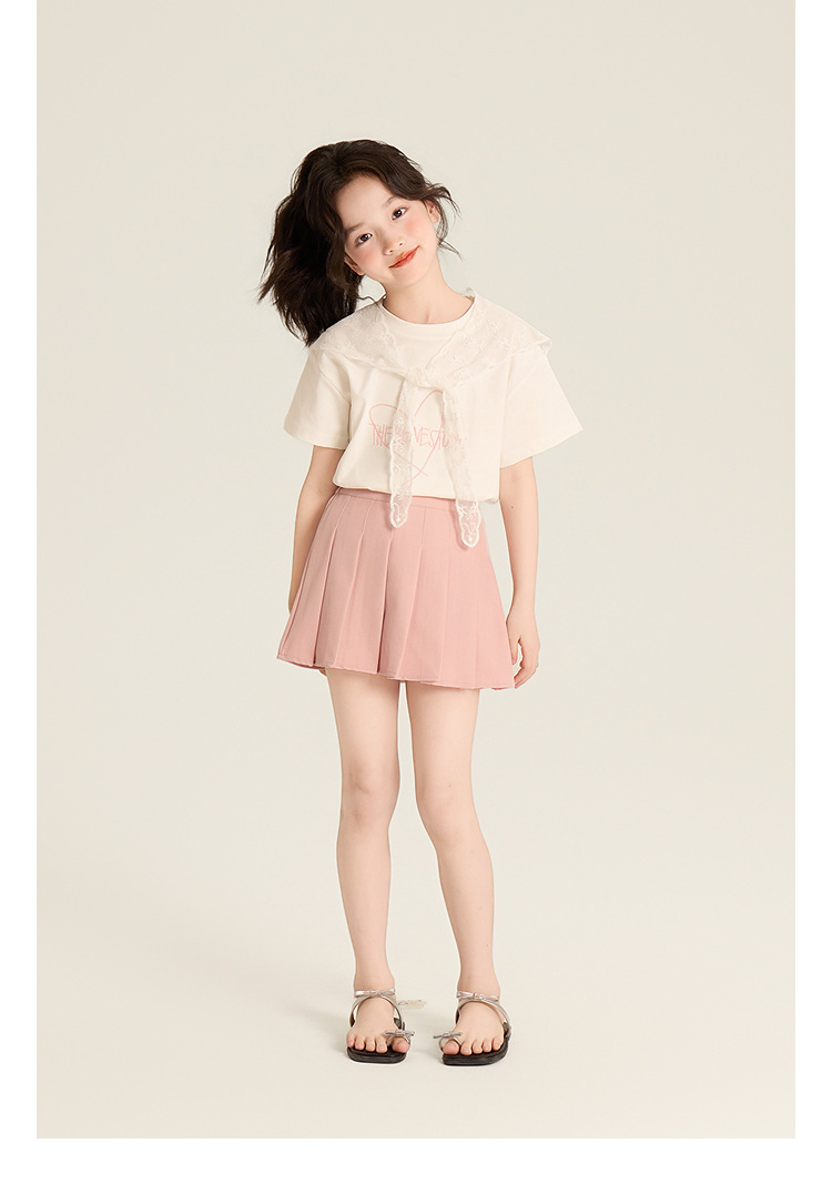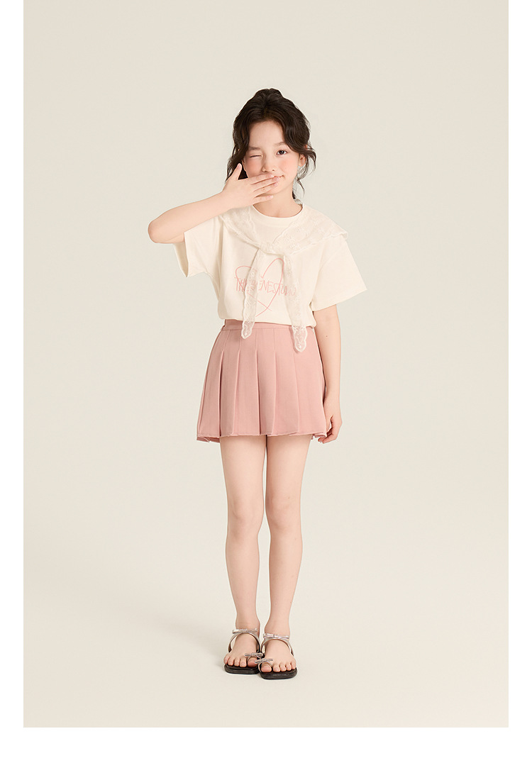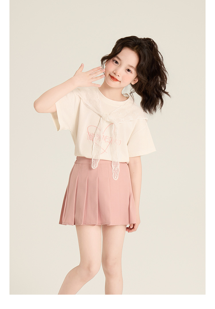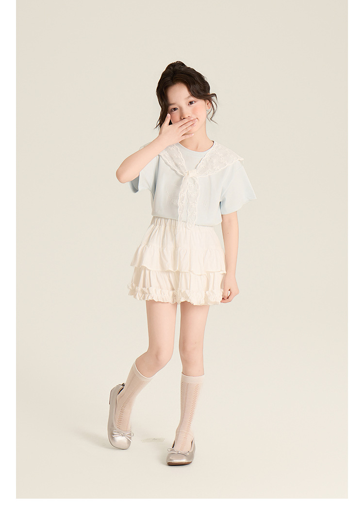 Amybaby Girls 'Top Summer 2025 새로운 스타일 Dopamine Mori 레이스 숄 스타일 러브 티셔츠