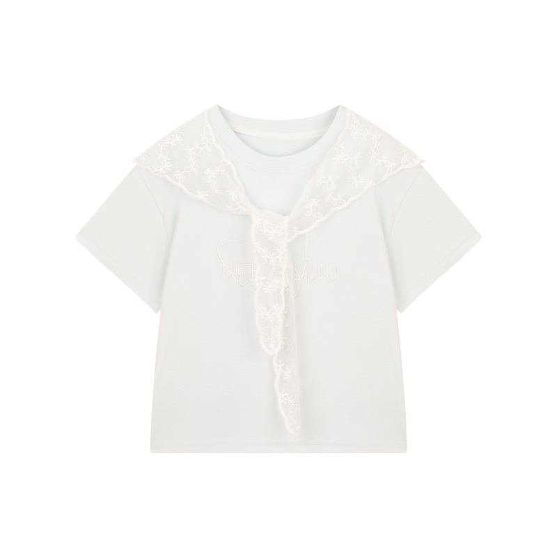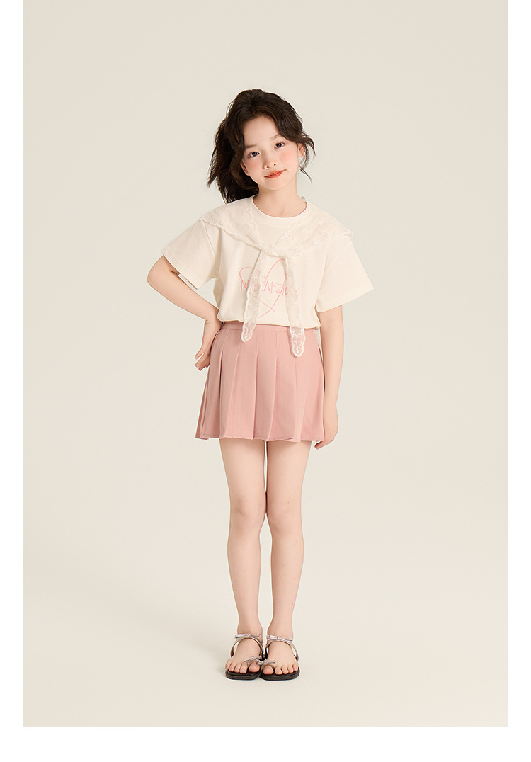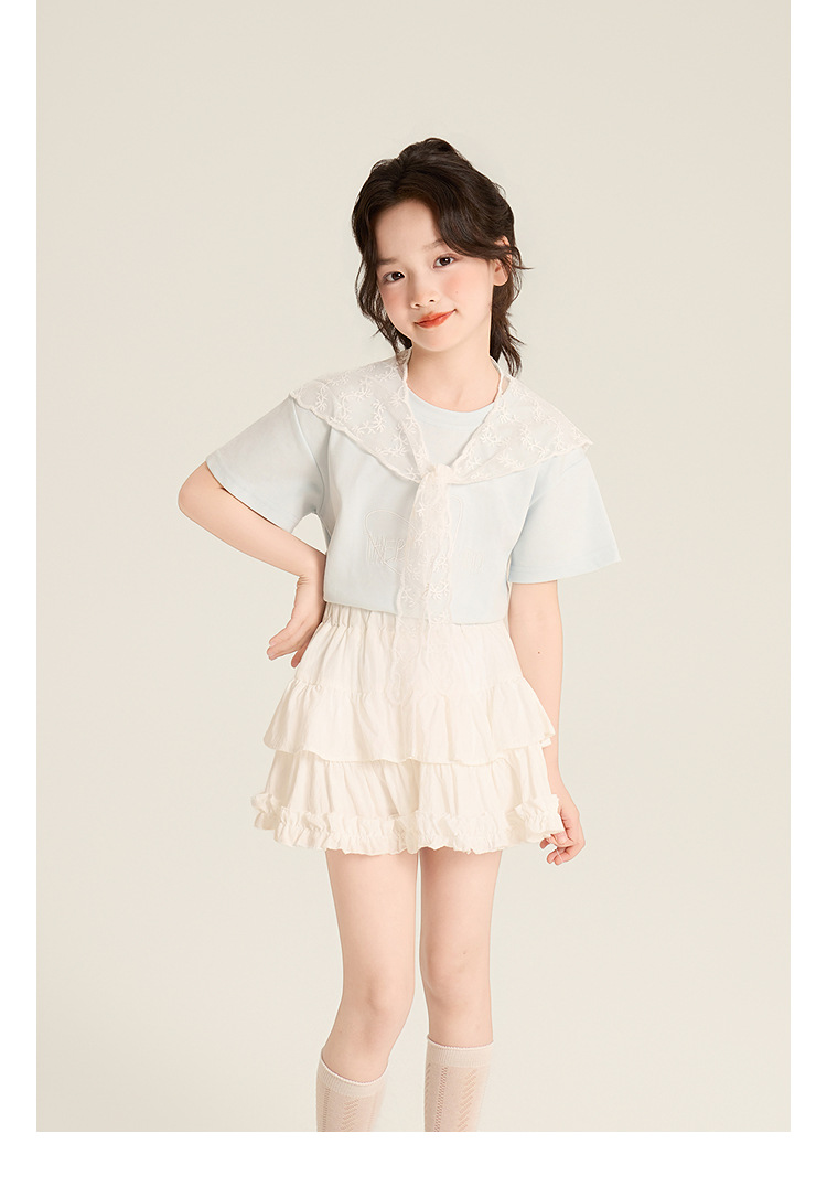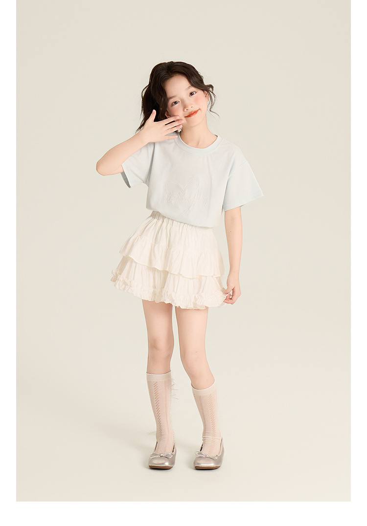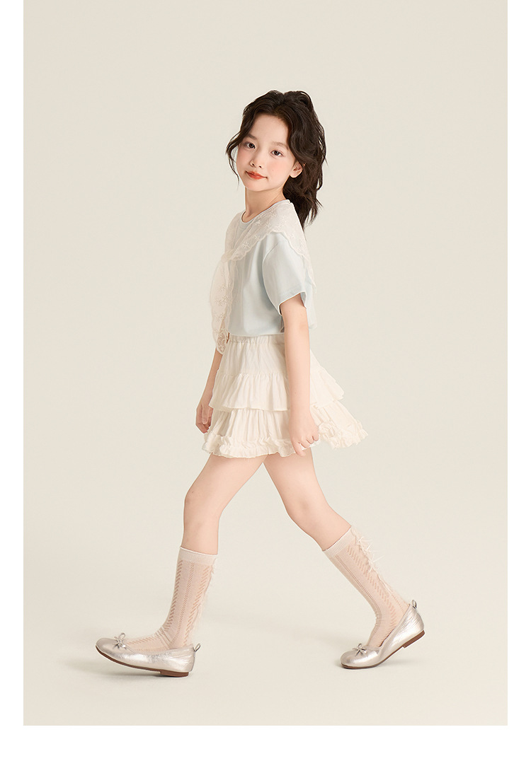 Amybaby Girls 'Top Summer 2025 새로운 스타일 Dopamine Mori 레이스 숄 스타일 러브 티셔츠