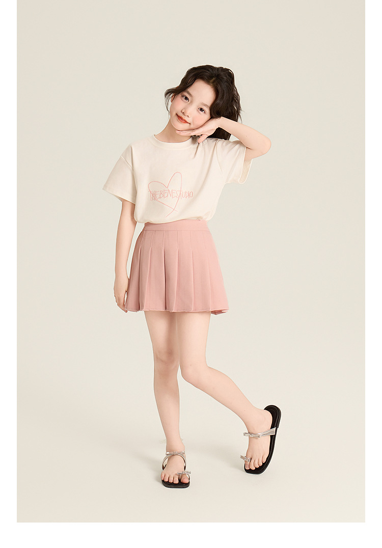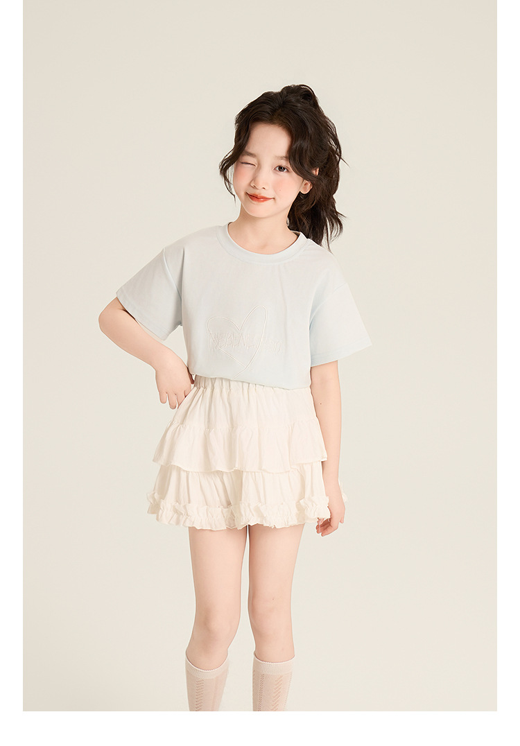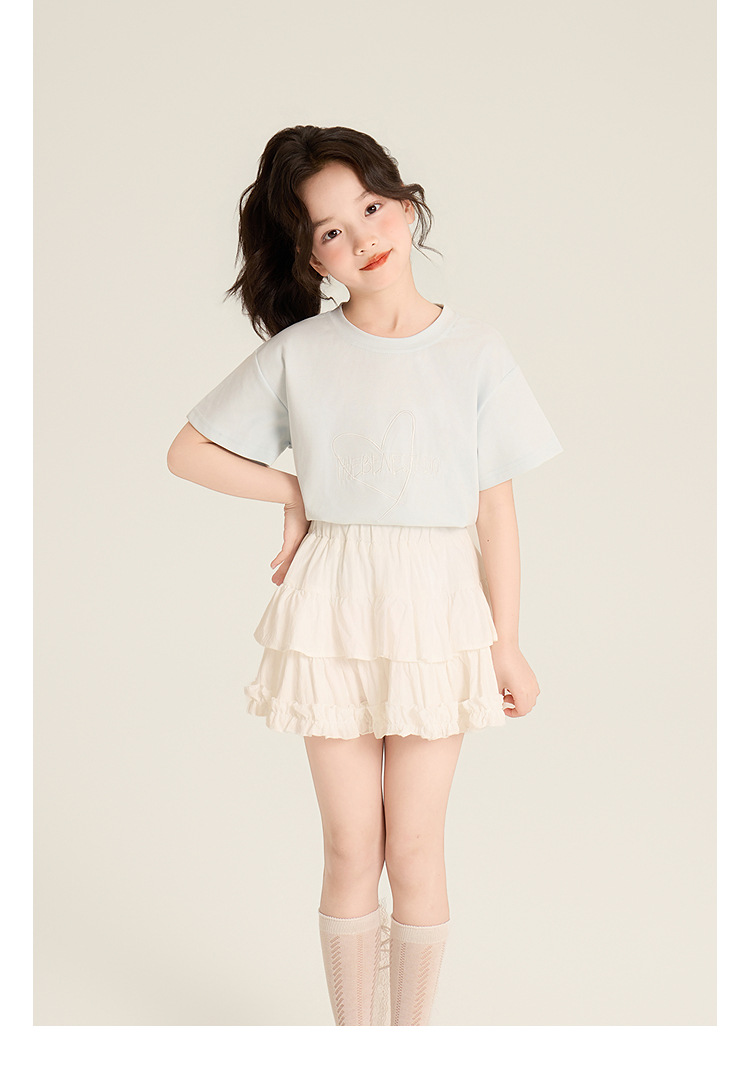 Amybaby Girls 'Top Summer 2025 새로운 스타일 Dopamine Mori 레이스 숄 스타일 러브 티셔츠스토어 가기