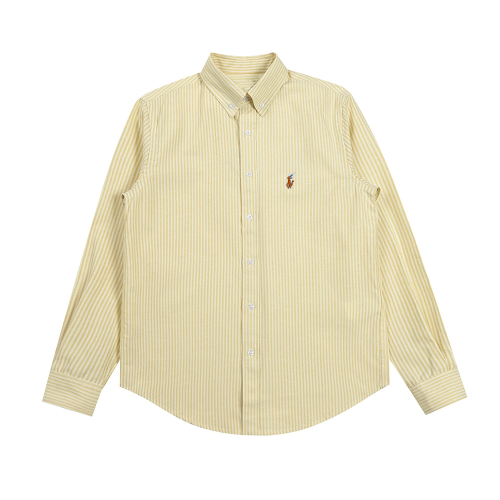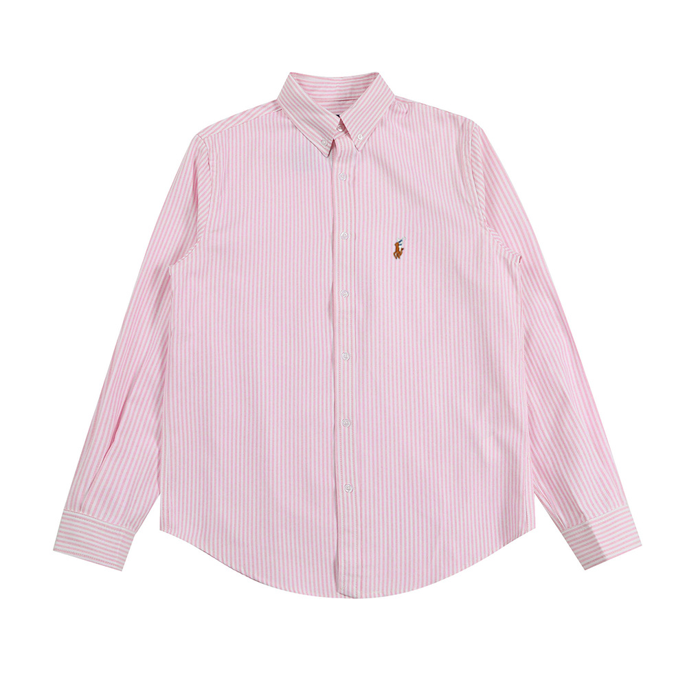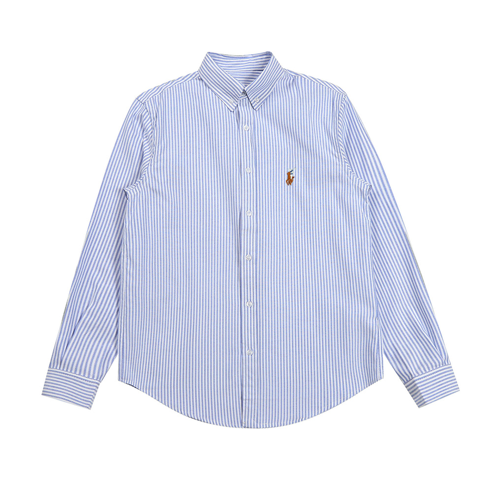 국경을 넘나드는 동남 아시아 옥스포드 섬유 스트라이프 셔츠 조랑말 자수 브레스트 라펠 긴 소매 캐주얼 셔츠 여성 의류스토어 가기