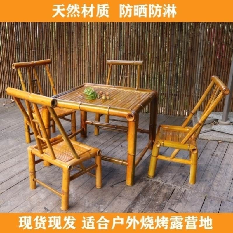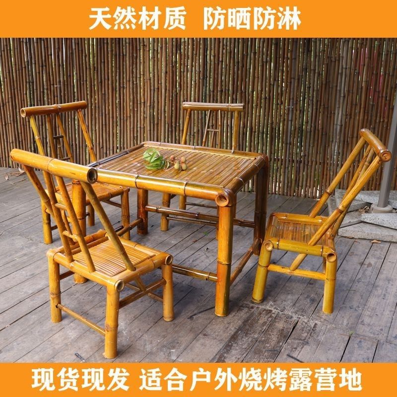 레트로 수제 대나무 테이블과 의자 조합 안뜰 커피 테이블, 난로, 차 테이블, 가정용 식탁, 야외 풀 세트