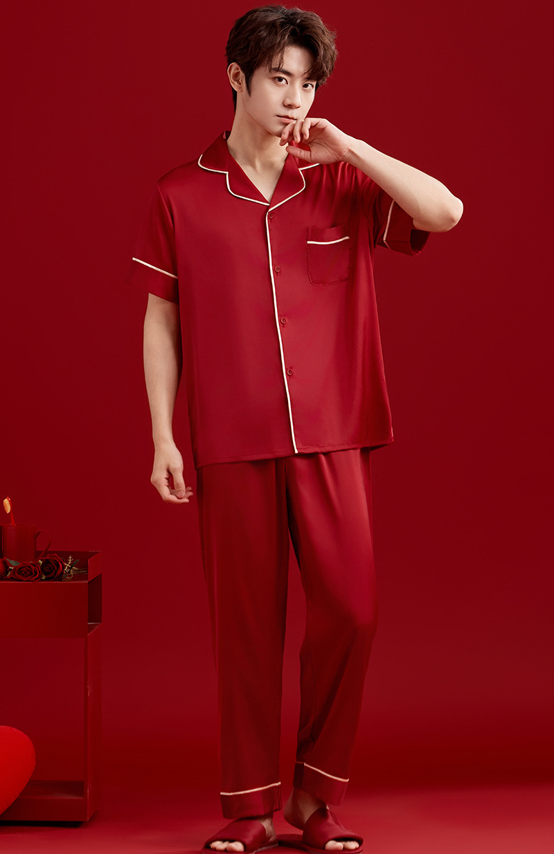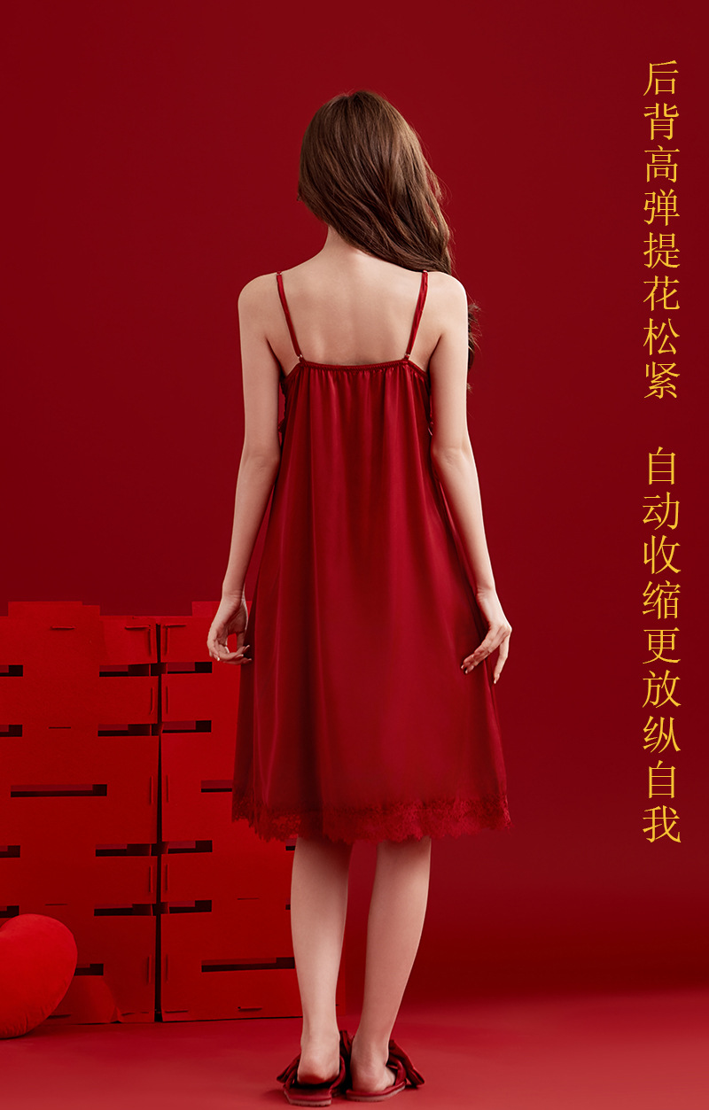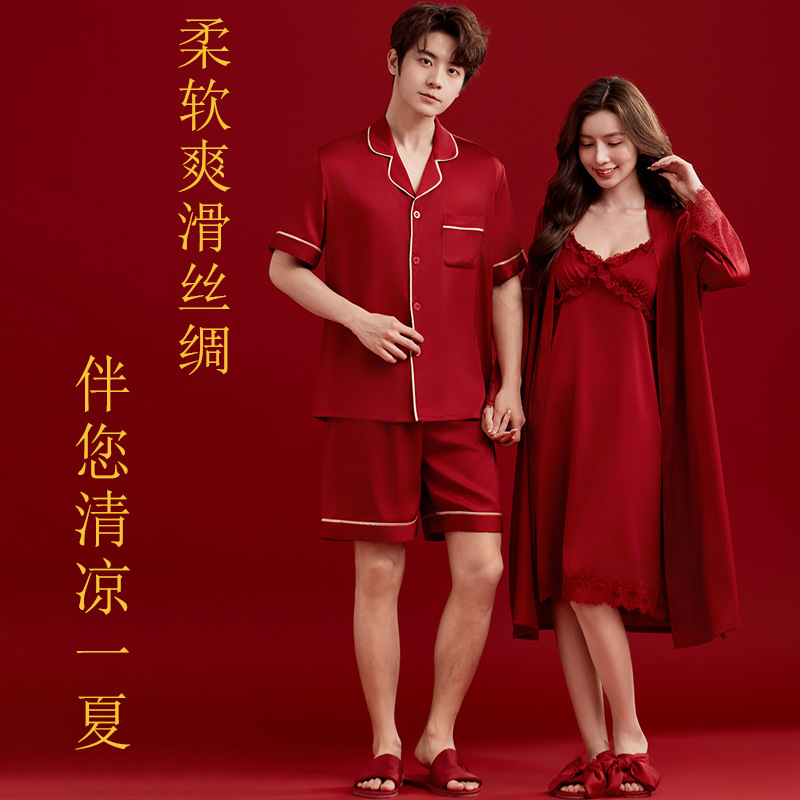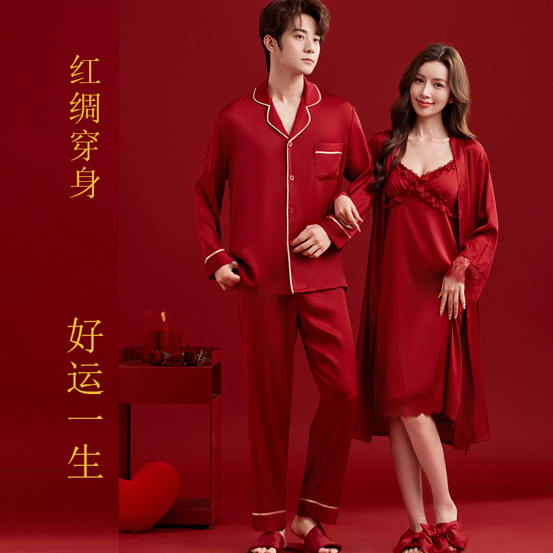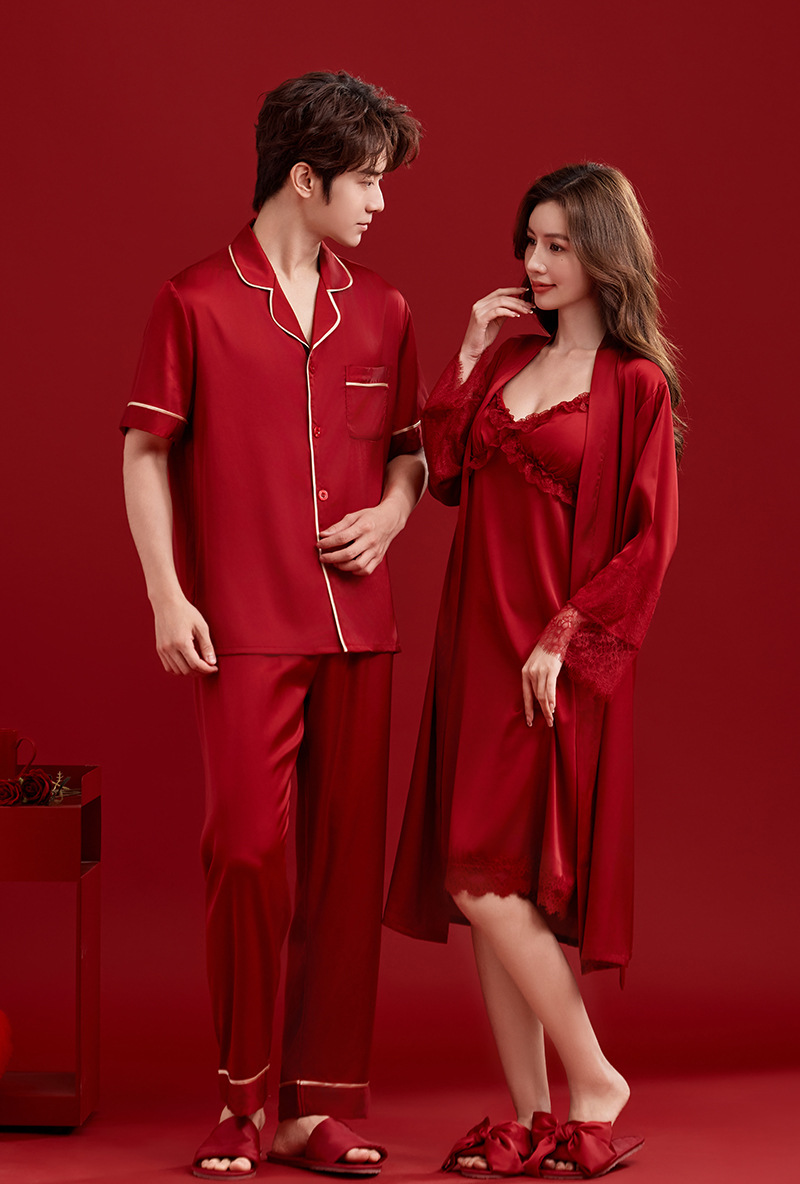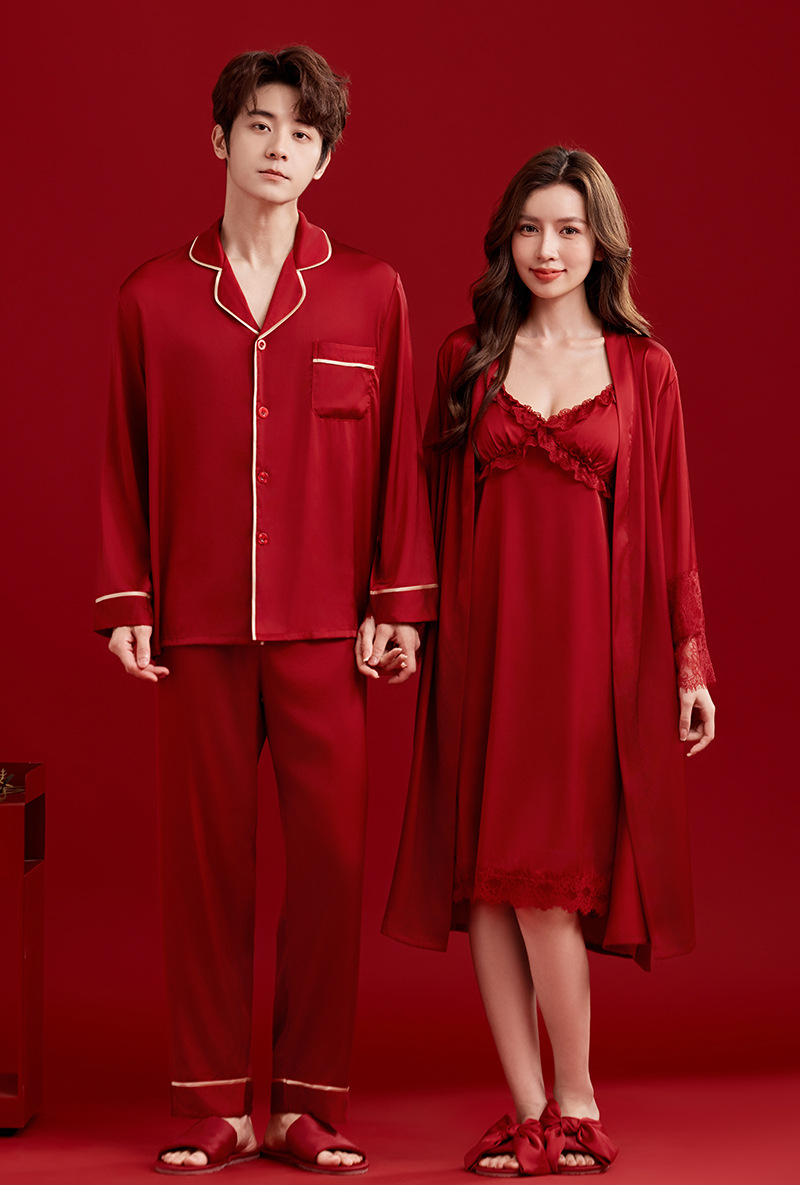 여성용 잠옷, 아이스 실크 레드 커플용 남녀 외투, 레이스 슬립 드레스, 신부용 모닝 가운 세트, 통기성스토어 가기