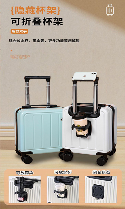 • 14inch 3단 당김 막대 + 컵 홀더 + 휴대폰 홀더 + 고급 안감