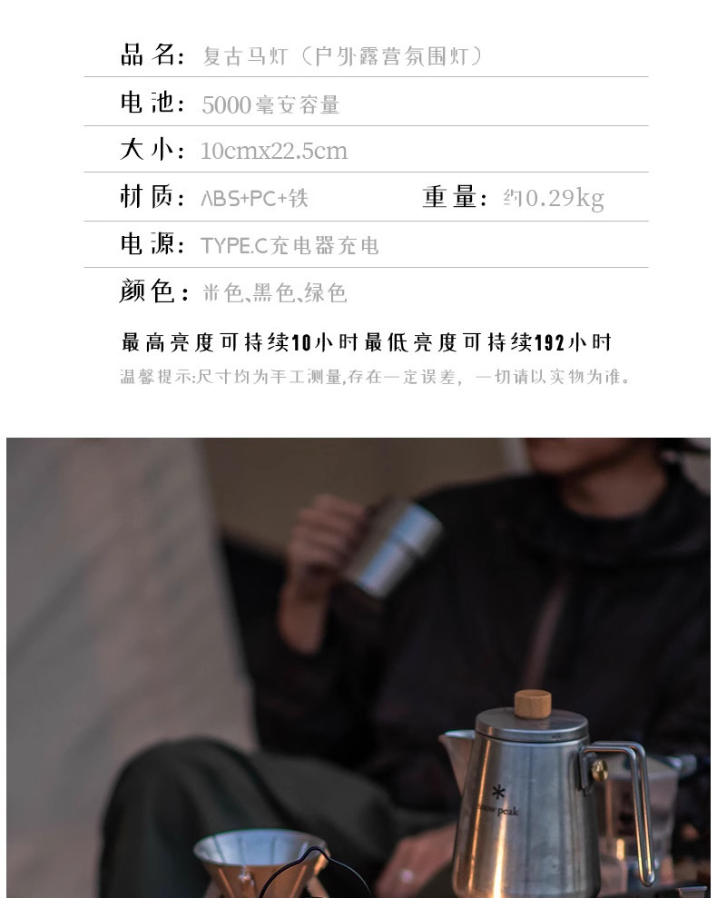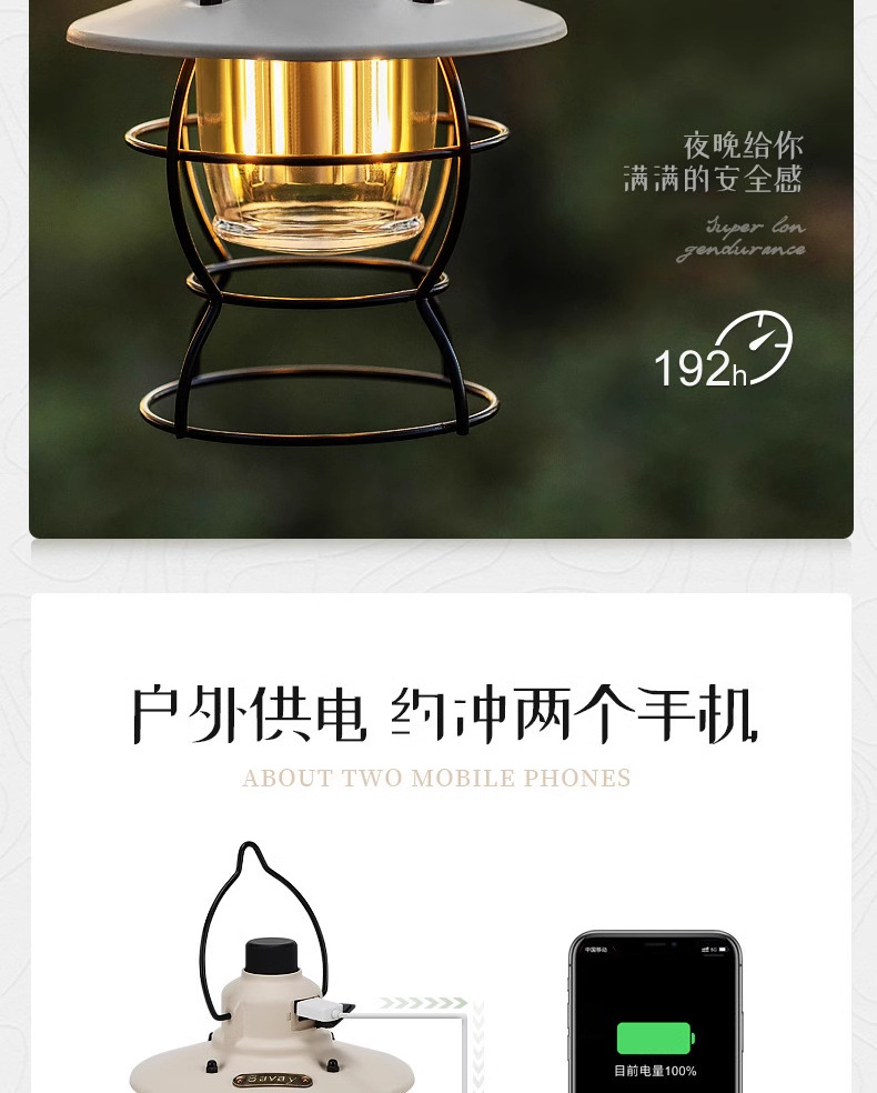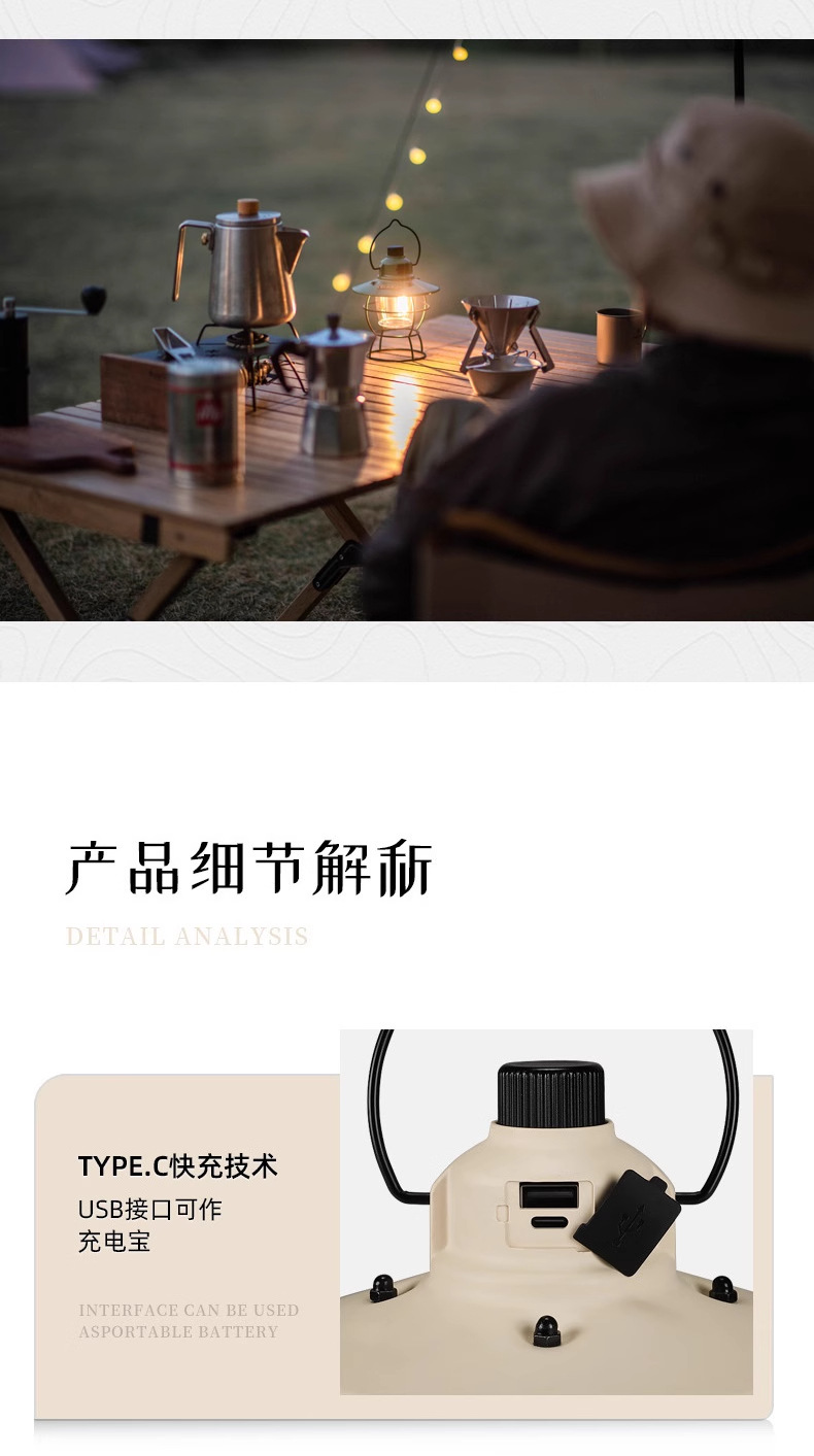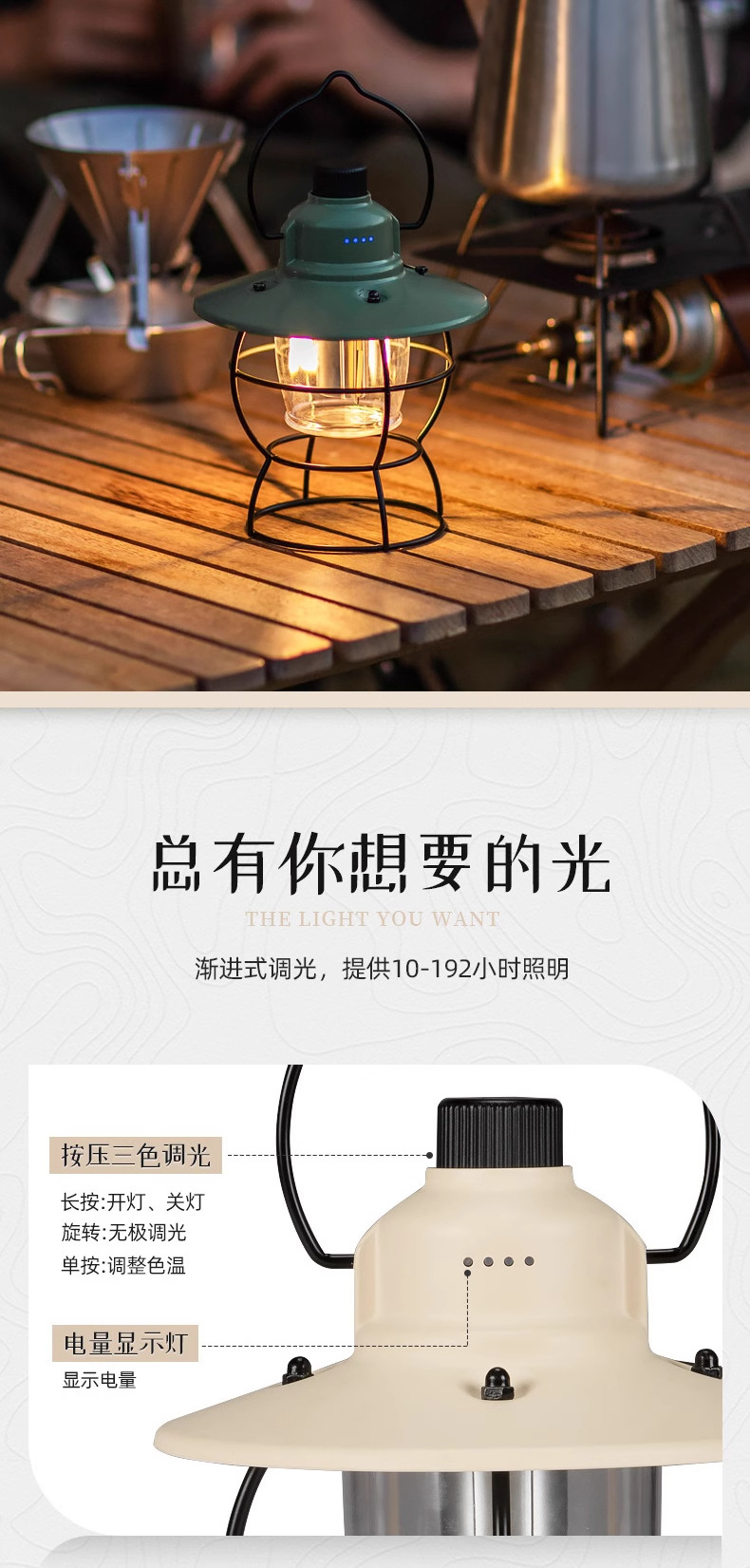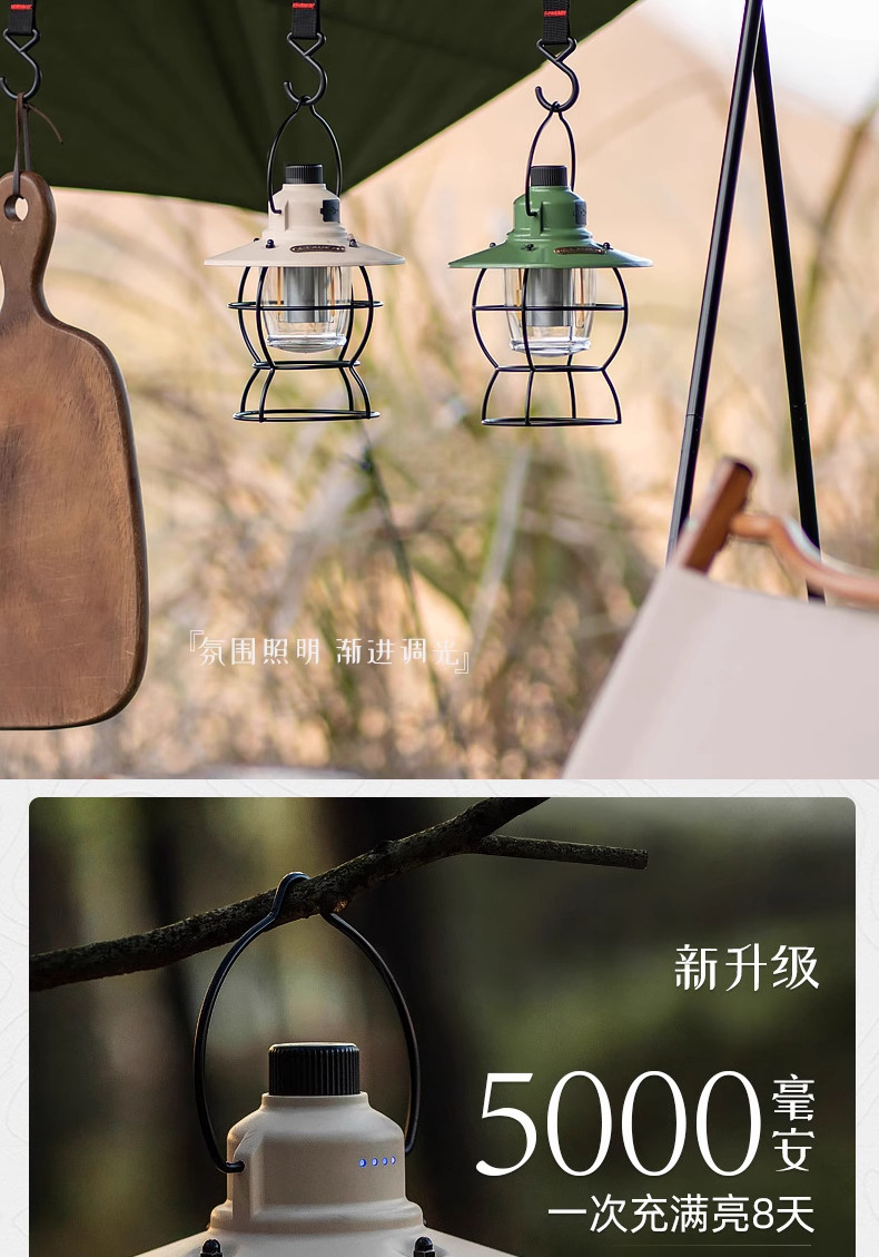 Jiang Fenfa 새로운 야외 조명 캠핑 램프 슈퍼 긴 내구성 충전 캠프 분위기 레트로 캠핑 텐트 말 램프