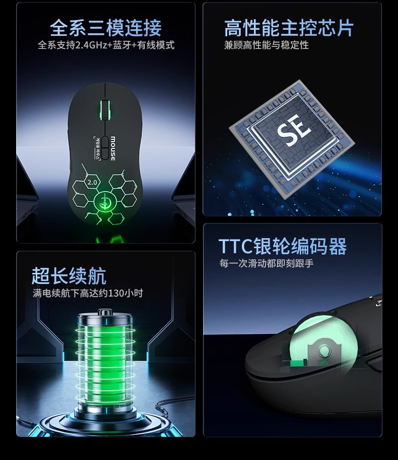 무선 3 모드 게임용 마우스 Bluetooth 오디오 충전 e-스포츠 매크로 프로그래밍 기계 컴퓨터 범용 휴대용