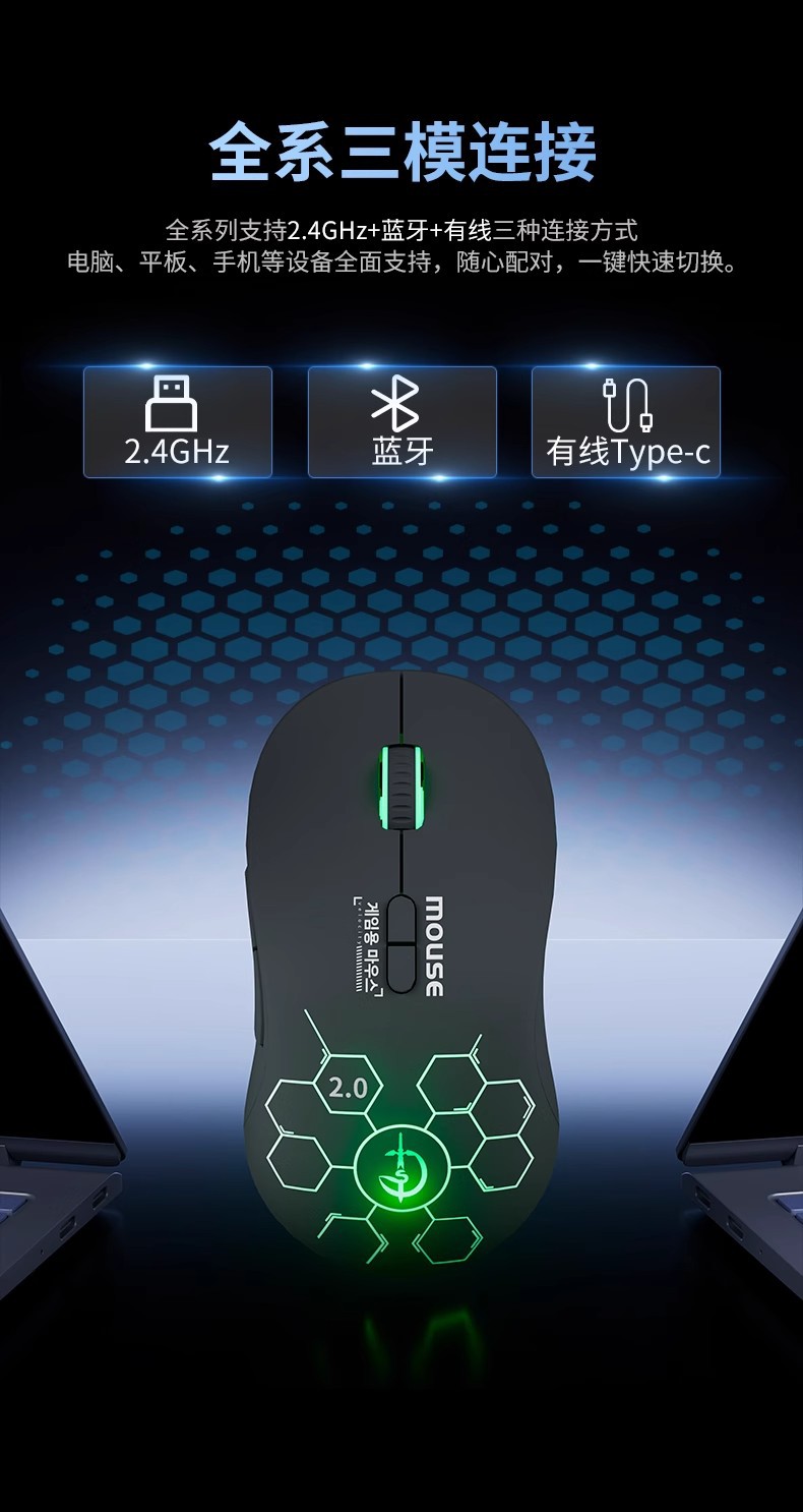 무선 3 모드 게임용 마우스 Bluetooth 오디오 충전 e-스포츠 매크로 프로그래밍 기계 컴퓨터 범용 휴대용스토어 가기