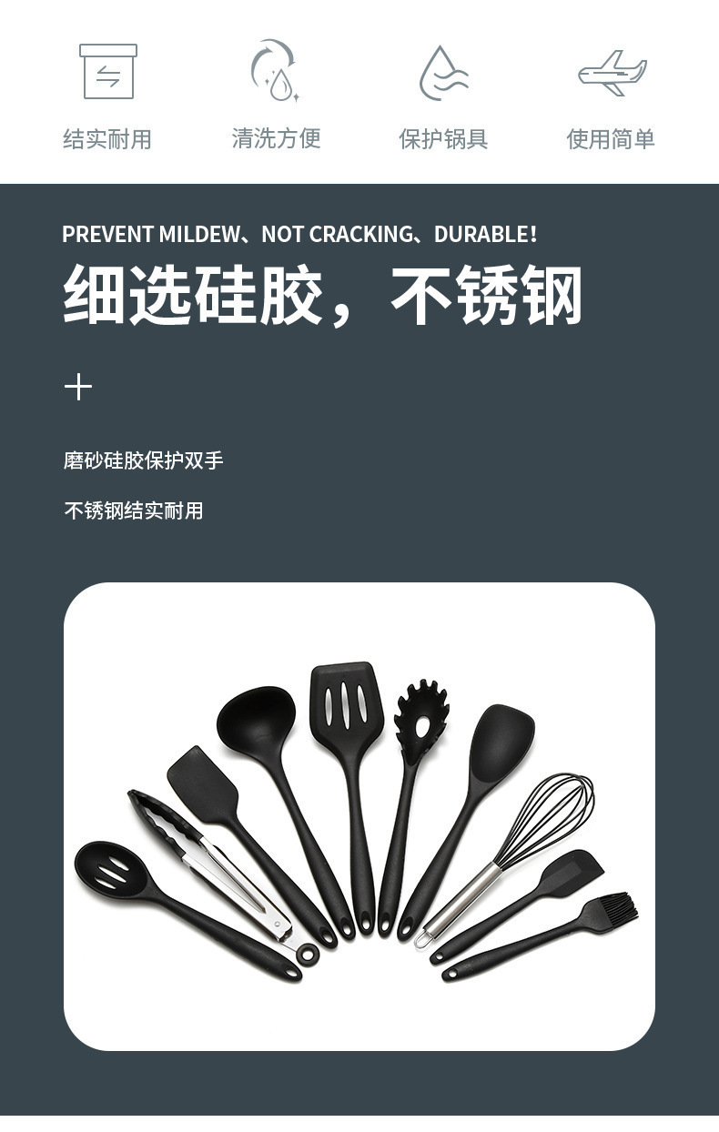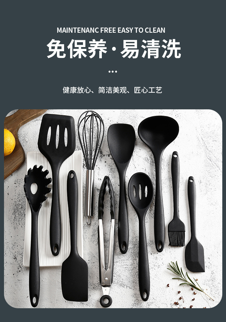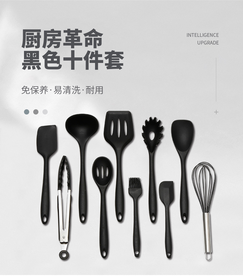 컬러 박스형 아마존 도매 실리콘 주방 용품 10피스 붙지 않는 팬 세트 주방 도구 요리 베이킹 용품