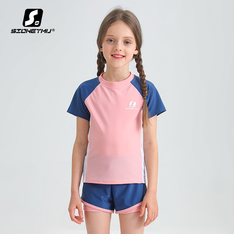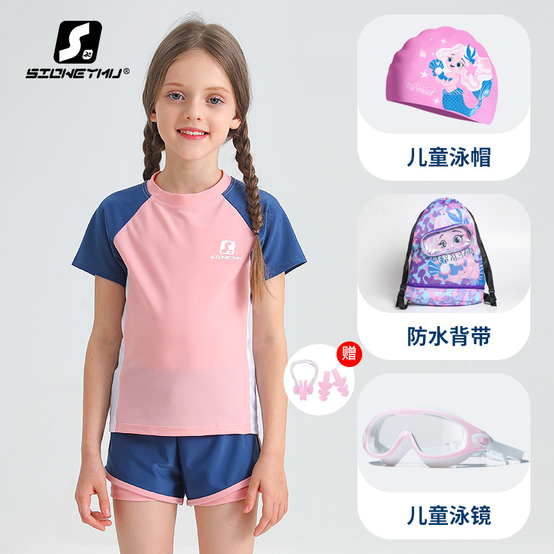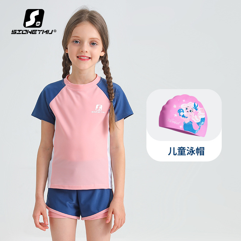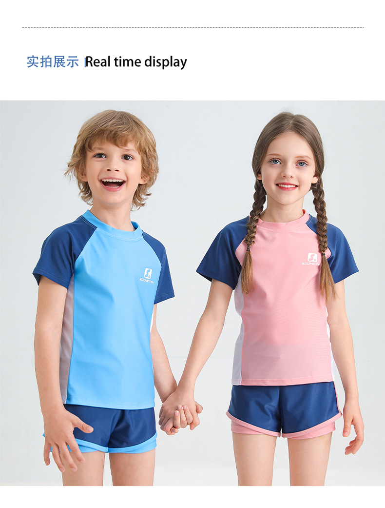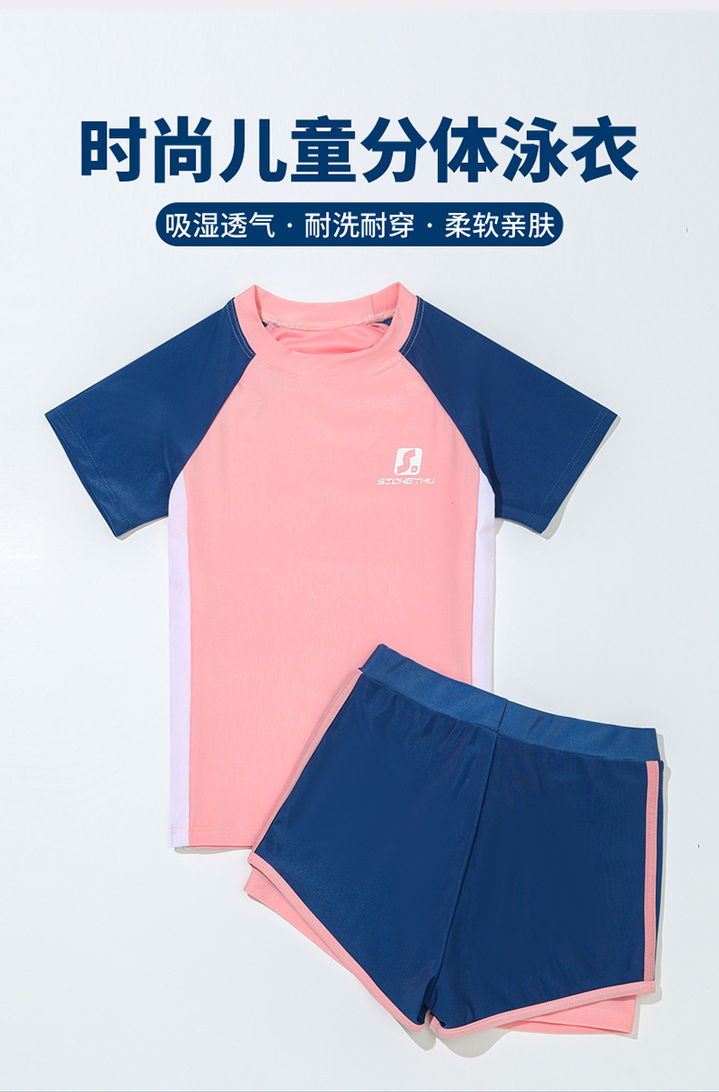 브랜드 어린이 분할 학생 수영복 소년 및 소녀 중 · 대형 어린이 반팔 반바지 수영복 빠른 건조 보수 수영복