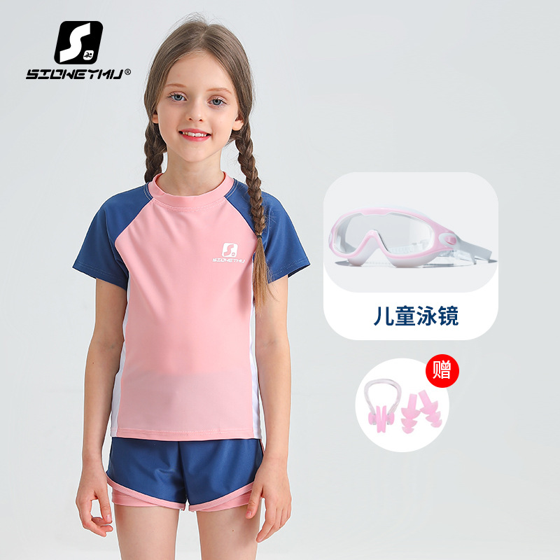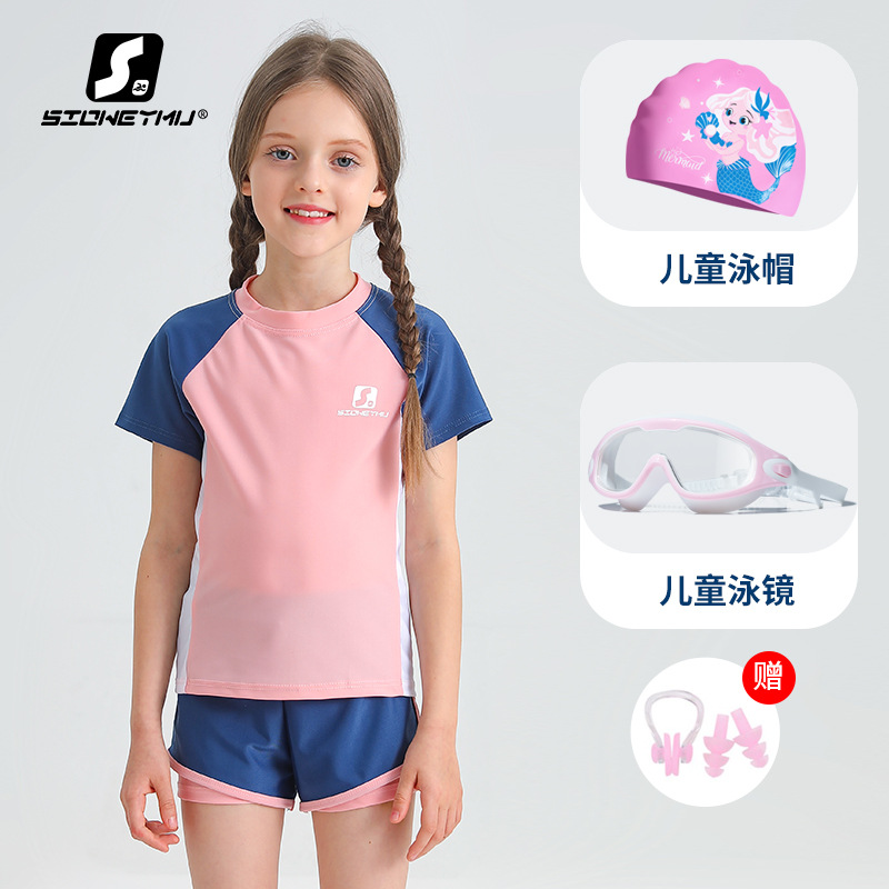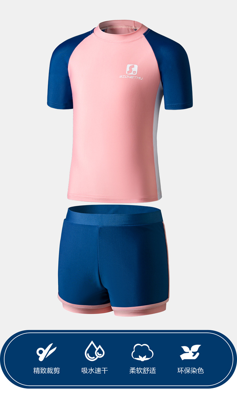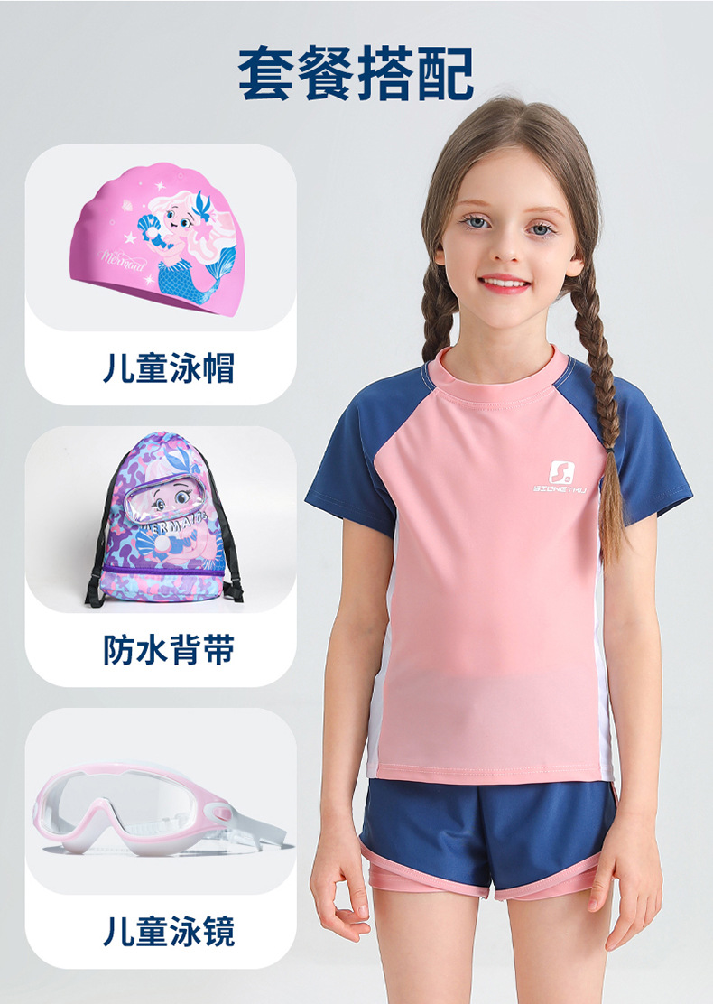 브랜드 어린이 분할 학생 수영복 소년 및 소녀 중 · 대형 어린이 반팔 반바지 수영복 빠른 건조 보수 수영복