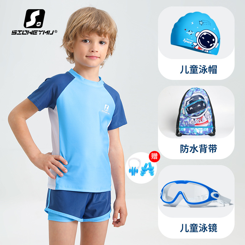브랜드 어린이 분할 학생 수영복 소년 및 소녀 중 · 대형 어린이 반팔 반바지 수영복 빠른 건조 보수 수영복스토어 가기