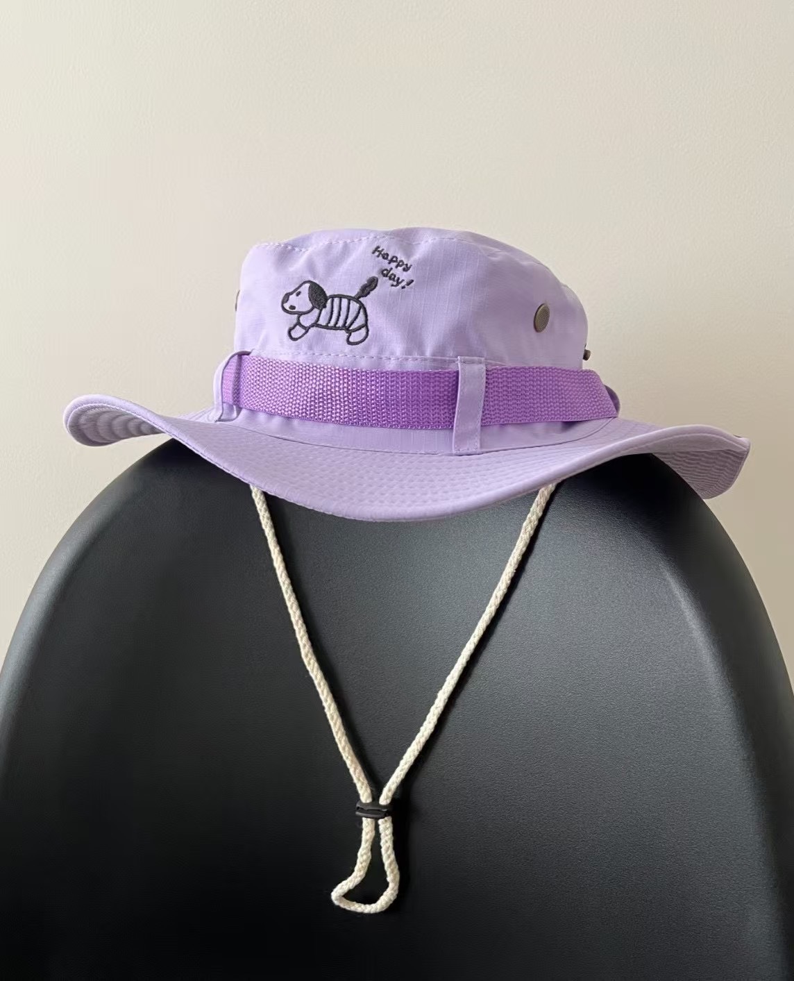 여성을위한 귀여운 만화 강아지 수 놓은 핑크 서양 카우보이 모자 여름 태양 보호 하이킹 큰 챙 하이킹 모자