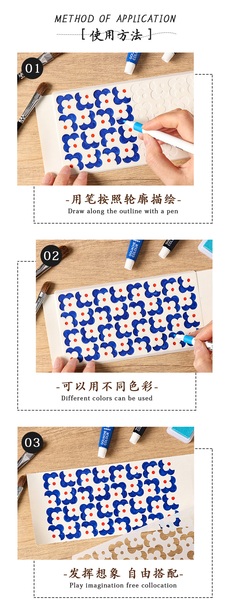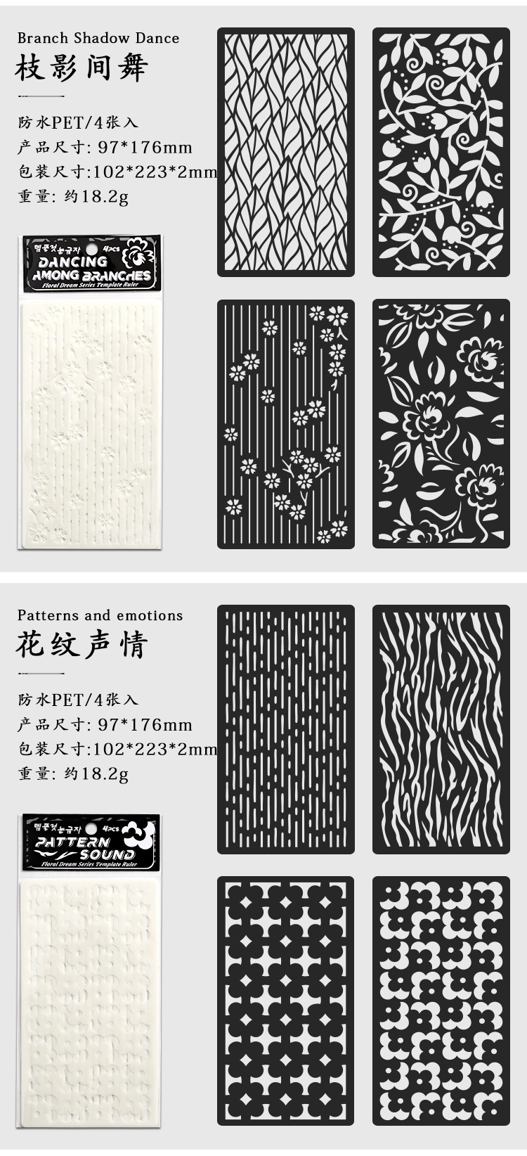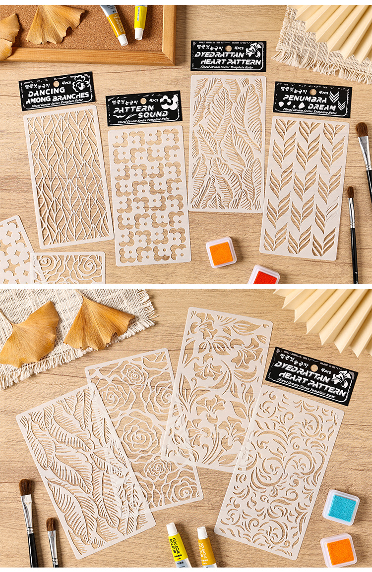 Yuezhen 꽃 언어 패턴 꿈 필기 신문 템플릿 중공 그림 크로스 국경 애완 동물 중공 템플릿 스프레이 그림 템플릿