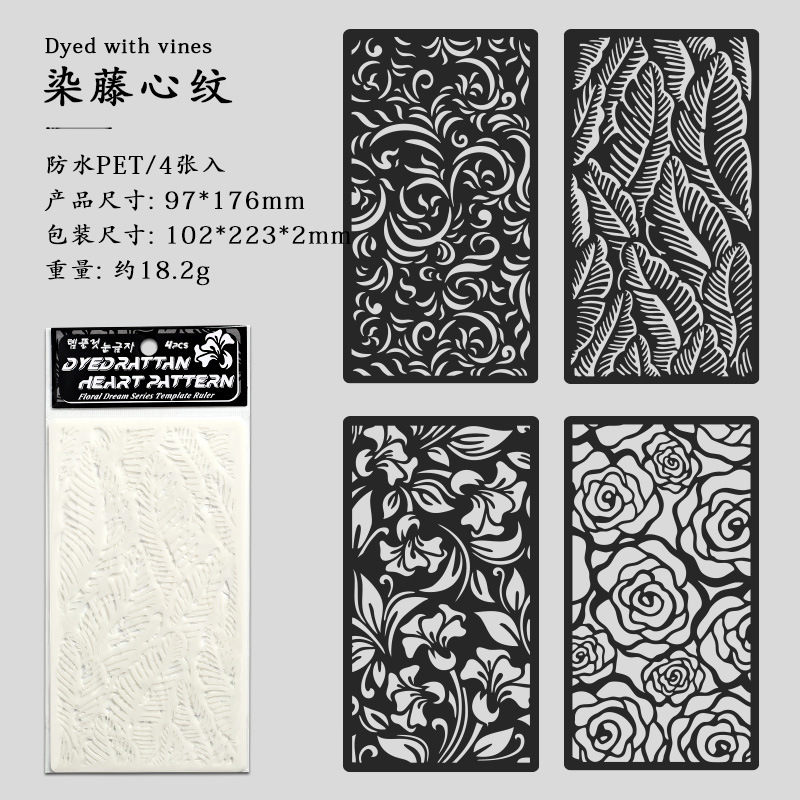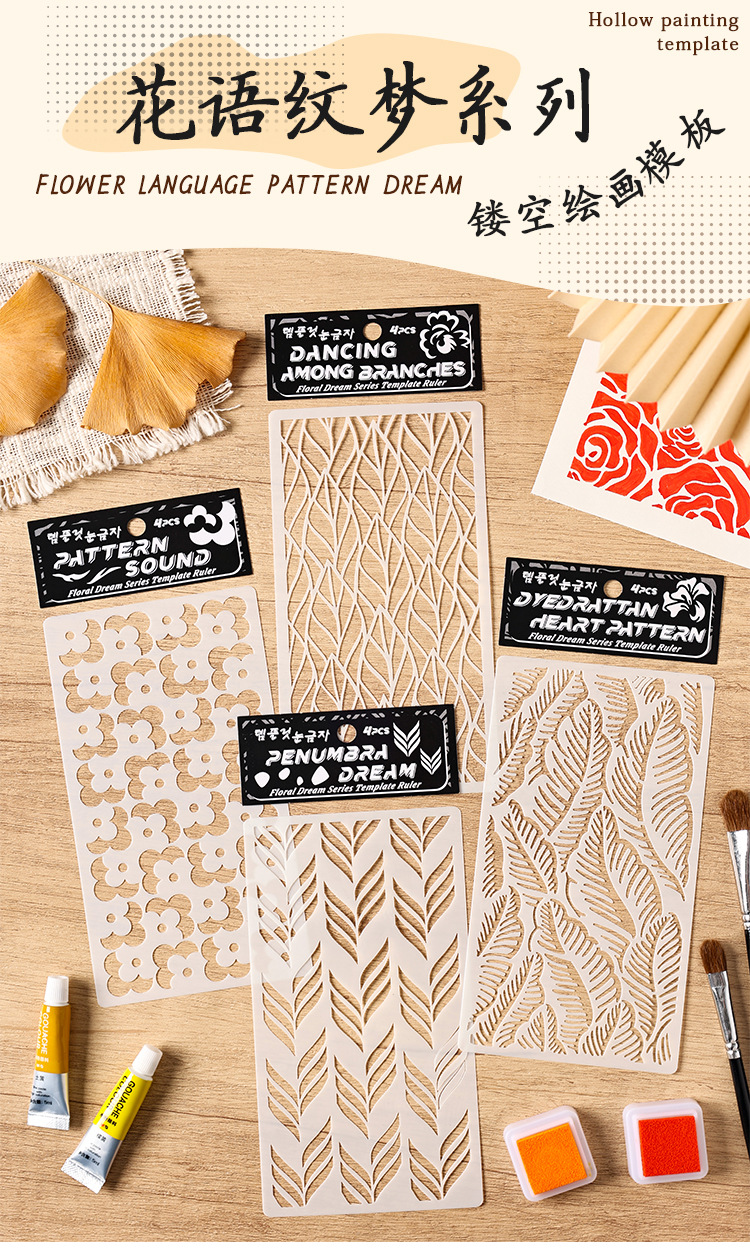 Yuezhen 꽃 언어 패턴 꿈 필기 신문 템플릿 중공 그림 크로스 국경 애완 동물 중공 템플릿 스프레이 그림 템플릿스토어 가기