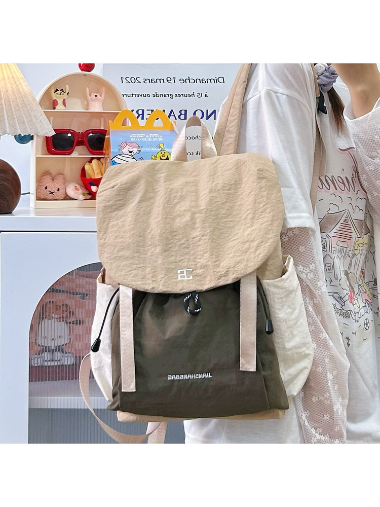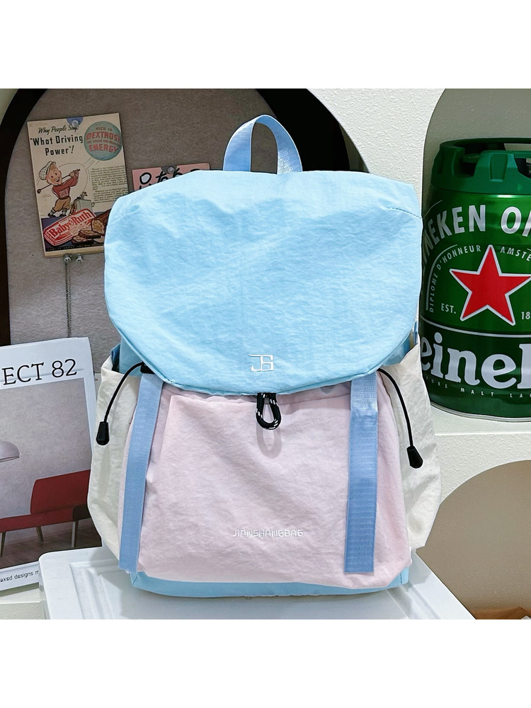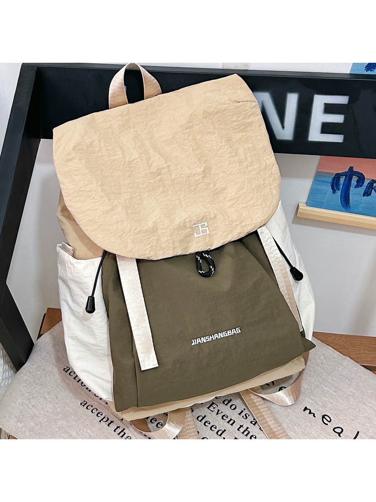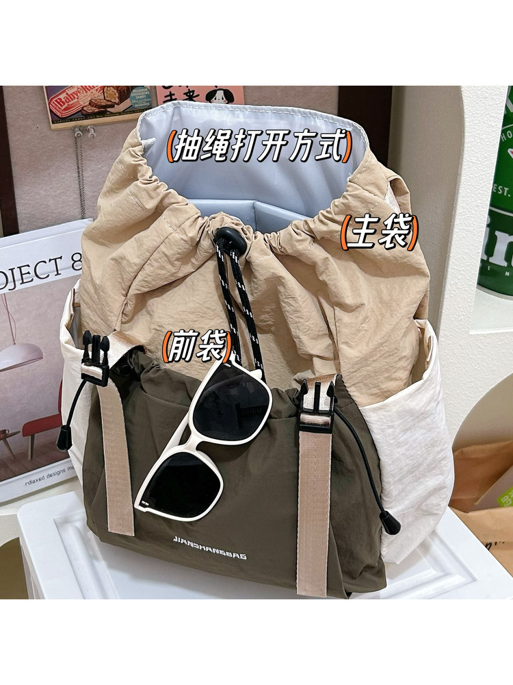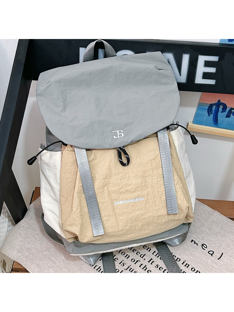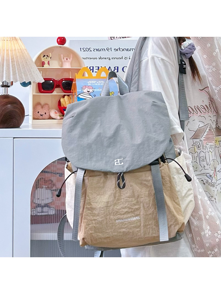 국경 간 새로운 경량 여행 배낭 트렌디 한 대비 색상 캡이있는 드로스트링 배낭 여성용 대용량 캐주얼 등산 가방