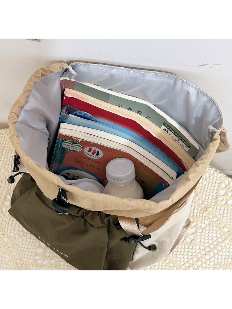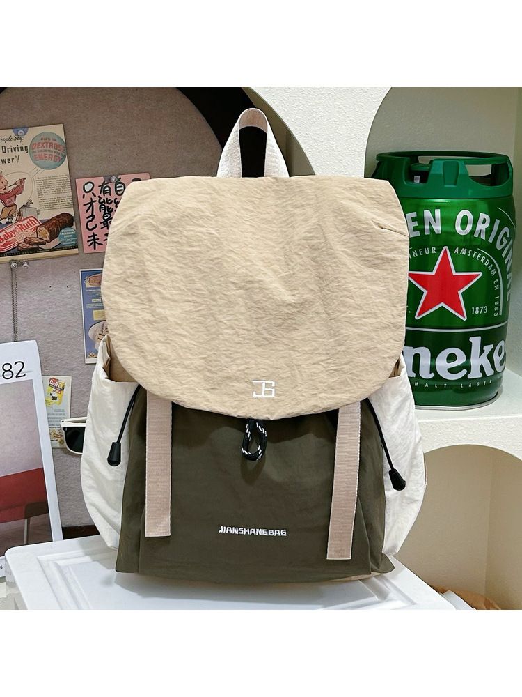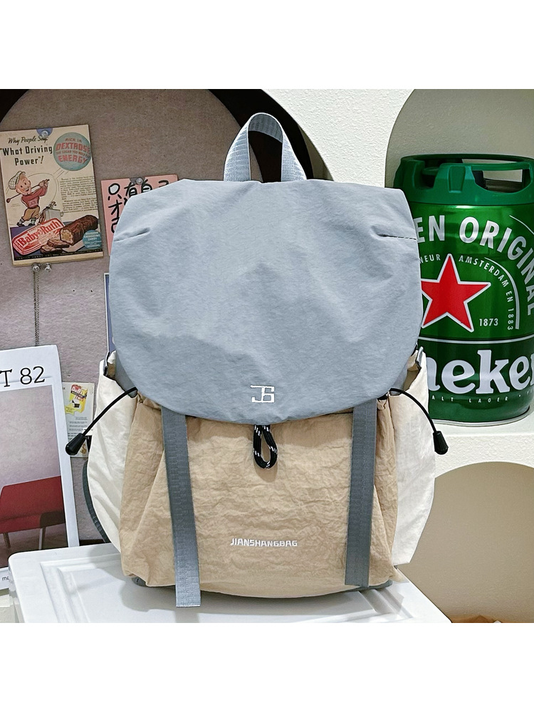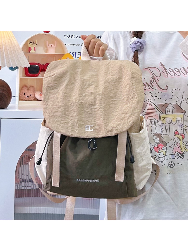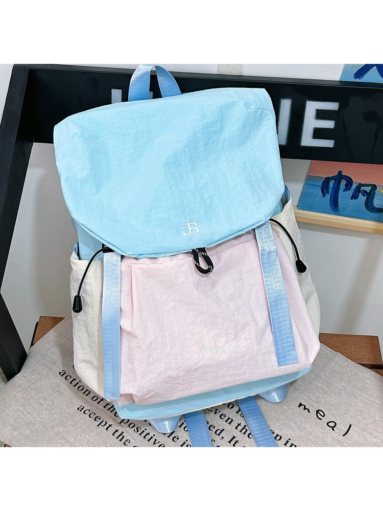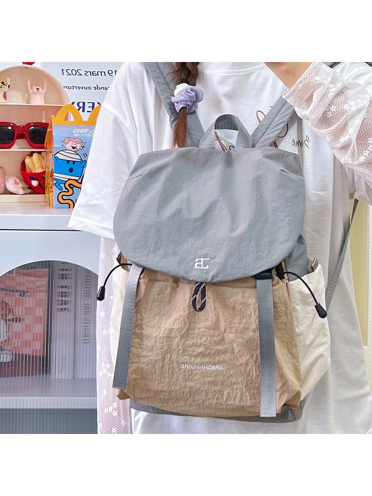 국경 간 새로운 경량 여행 배낭 트렌디 한 대비 색상 캡이있는 드로스트링 배낭 여성용 대용량 캐주얼 등산 가방