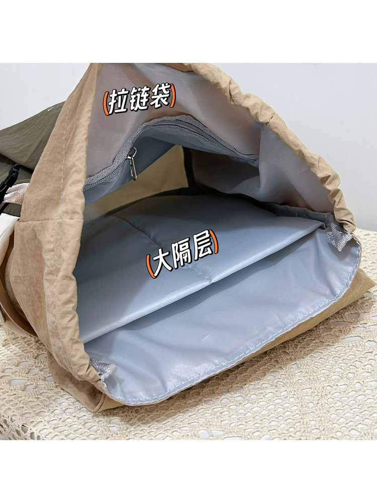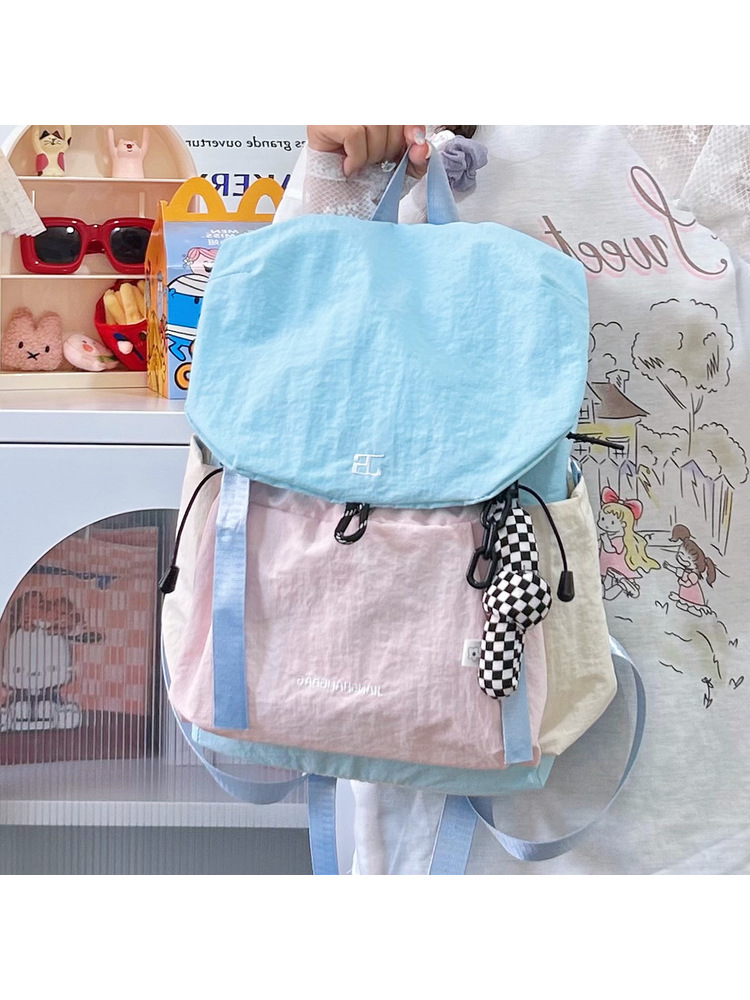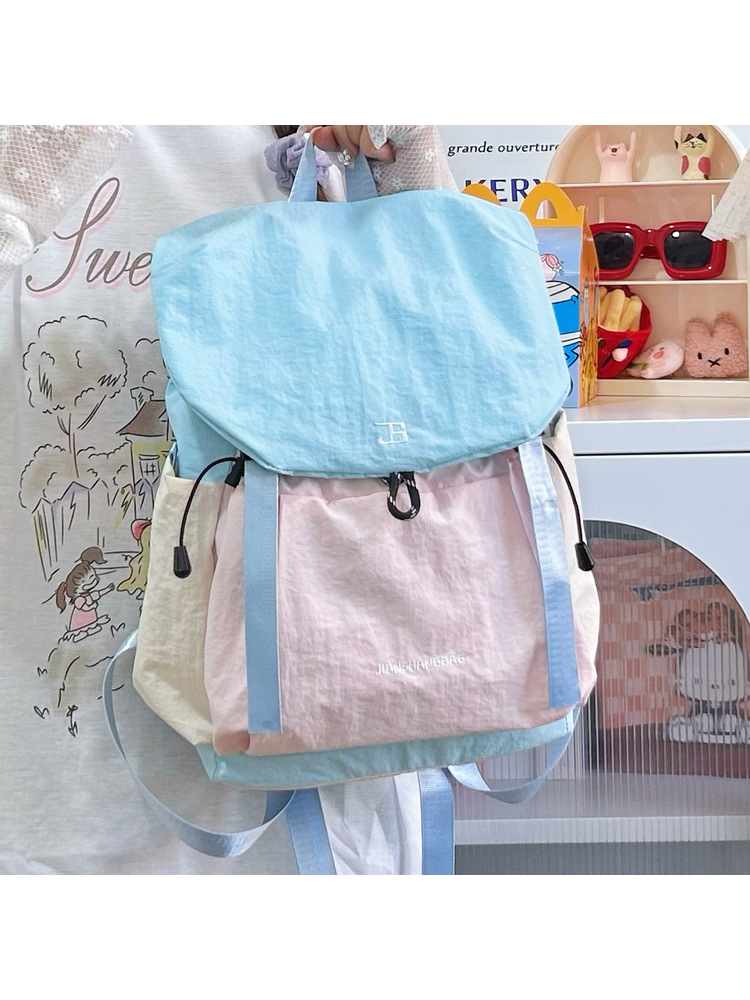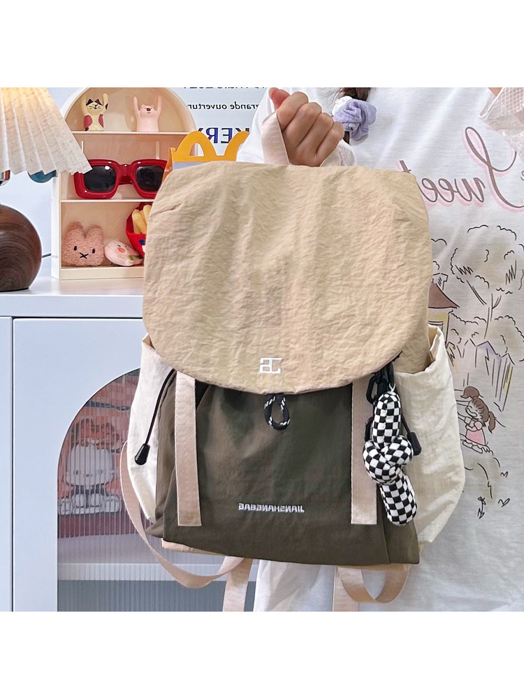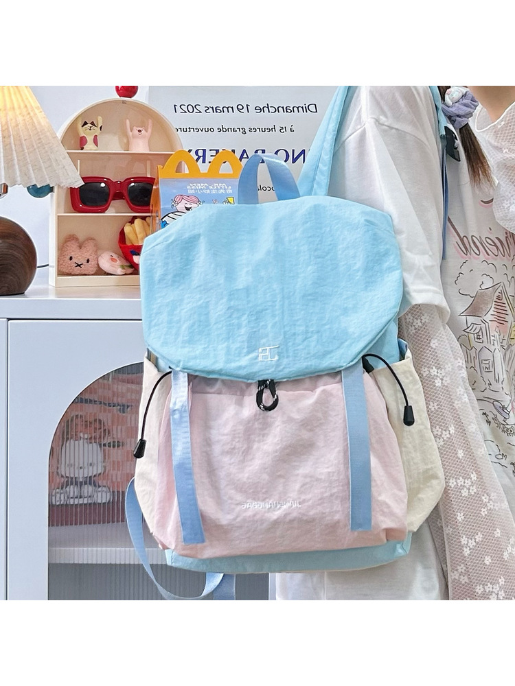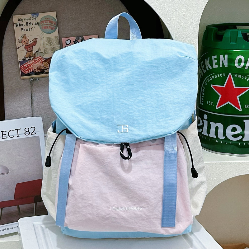국경 간 새로운 경량 여행 배낭 트렌디 한 대비 색상 캡이있는 드로스트링 배낭 여성용 대용량 캐주얼 등산 가방